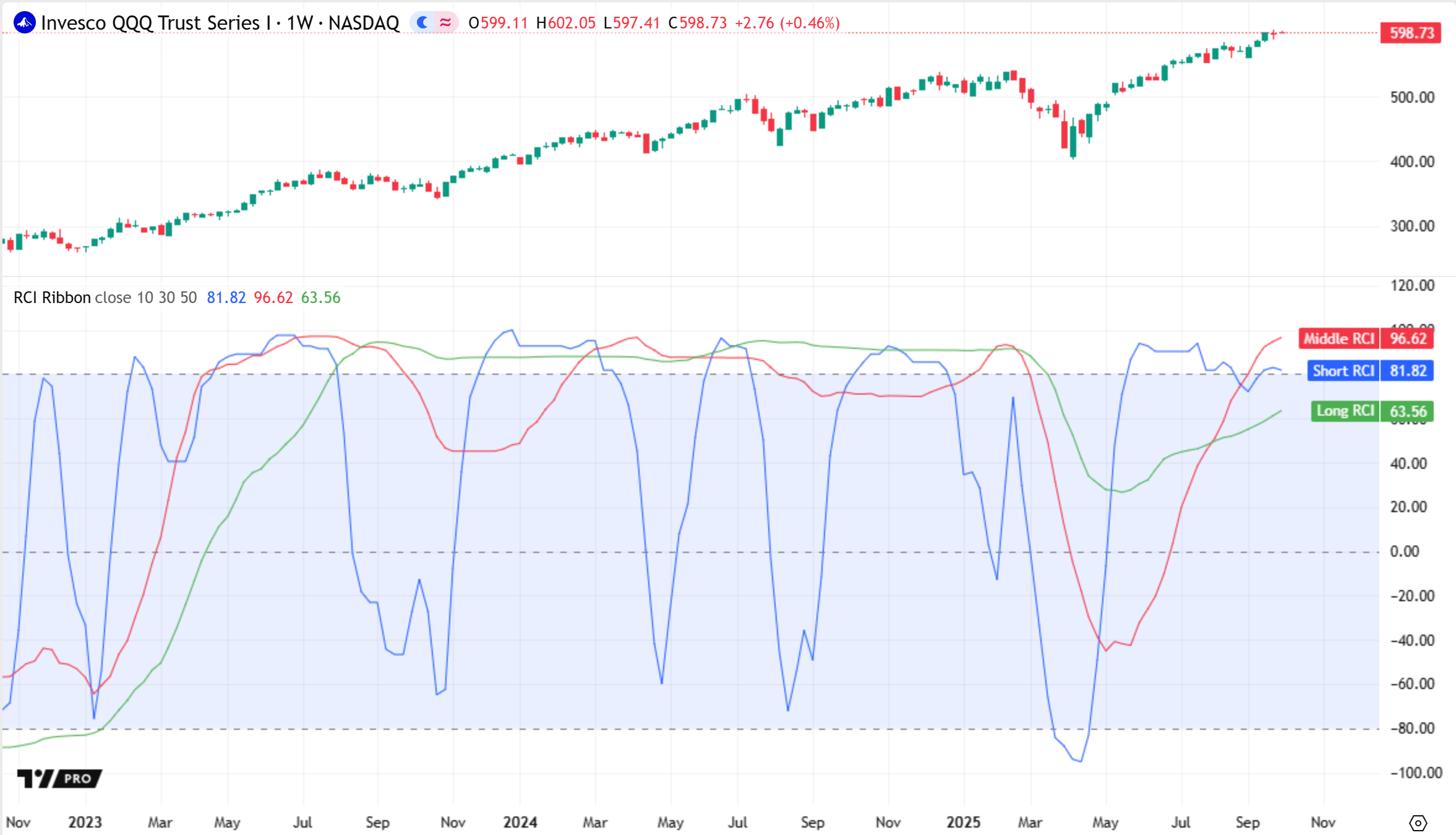 通过同时分析三个 RCI 震荡指标,交易者可以观察价格变动的方向在多个时间周期内是否相对一致,或者短期方向性变化是否与长期结构出现偏差。