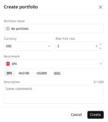 - 描述(可选)— 投资组合描述。此字段可以留空。最大长度 — 1200个字符。