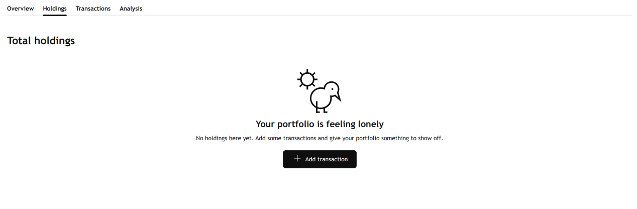 如果投资组合中没有资产交易,系统将提示您在所有标签页上添加第一笔交易。