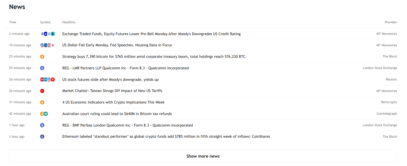 Displays relevant news related to the assets in the portfolio.