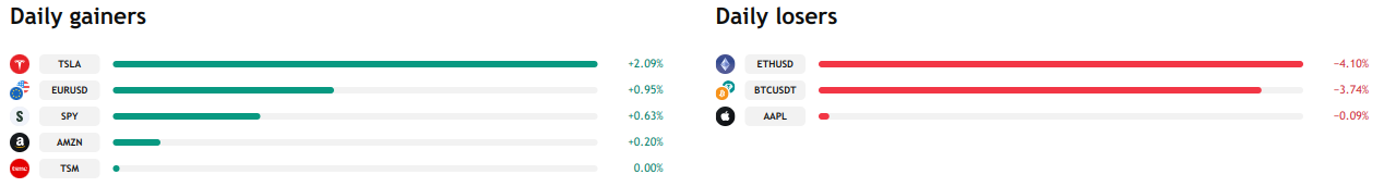 - The Daily Gainers block displays assets with positive dynamics (growth).