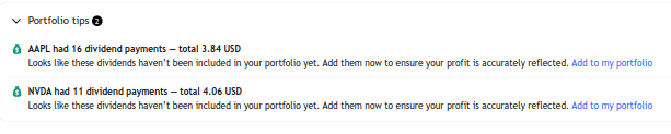 如果您在2025年7月3日至2025年7月9日之间手动添加了股息交易,则不会显示股息提示。