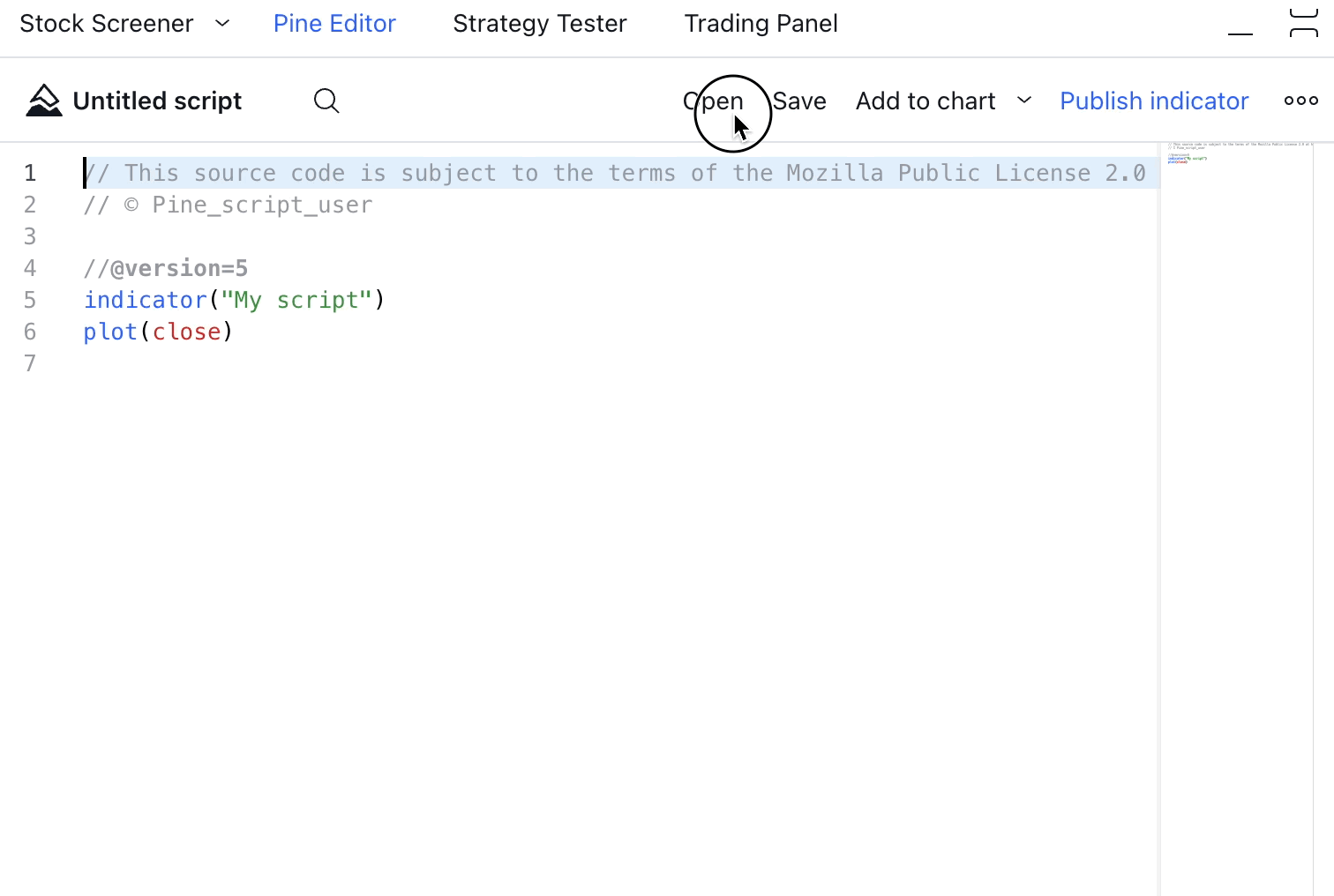 When you open other users' scripts in your Pine Editor, the situation is similar, except that before you can make changes, you must make a copy of the script first. Any edits you make to this copy will not affect the original script in any way.