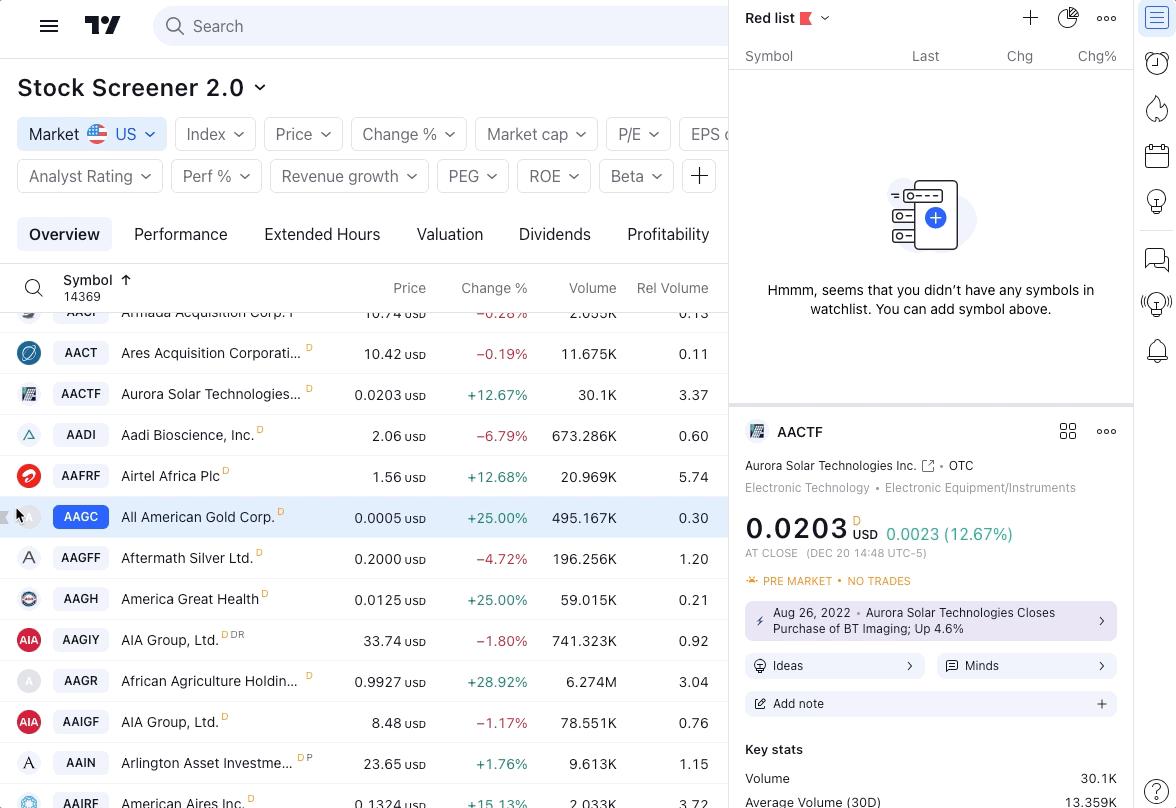 假设您希望使用 10 种符合筛选器搜索条件的金融商品生成商品列表。 这是您需要做的: