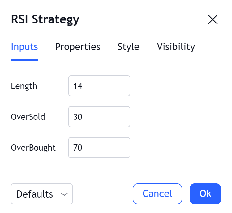 相对强度指数策略基于 RSI 指标。当 RSI 从超卖线下方穿过时,它会做多,当 RSI 从上方穿过超买线时,它会反转仓位和做空。