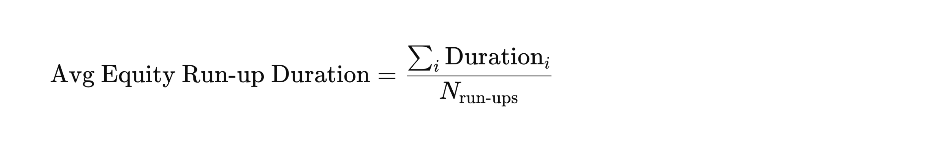 The average number of calendar days during which equity was in a growth phase (from minimum to new peak). Shows how long, on average, the equity growth lasts.