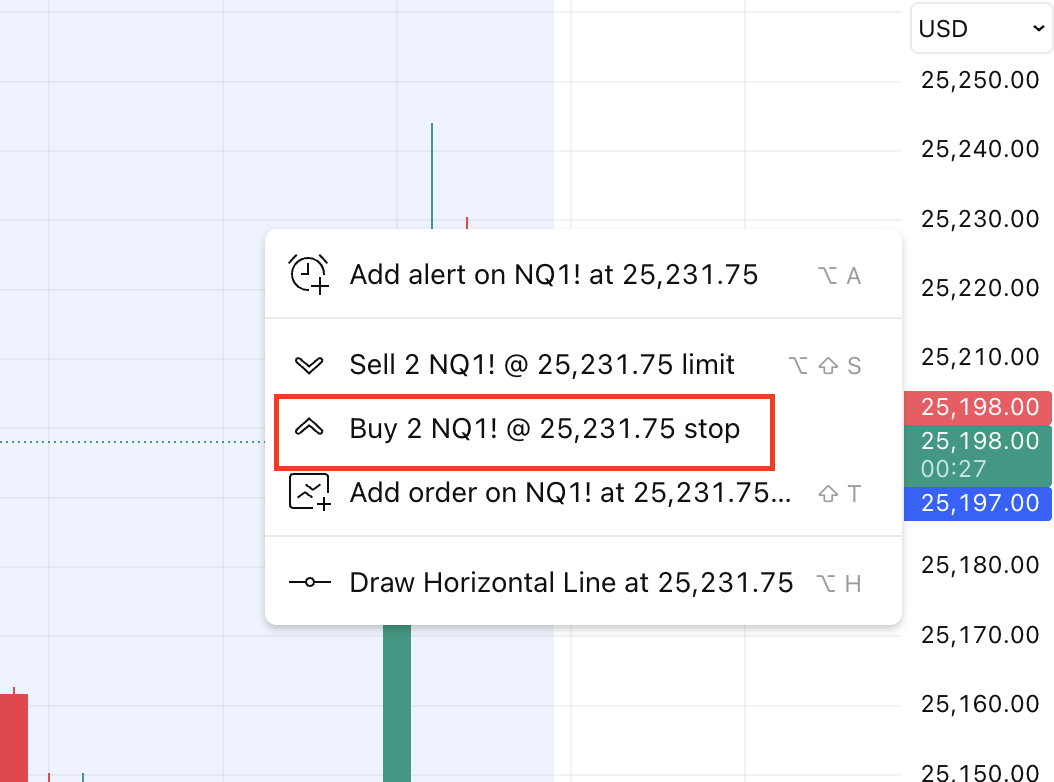 - Drag it down on the chart.