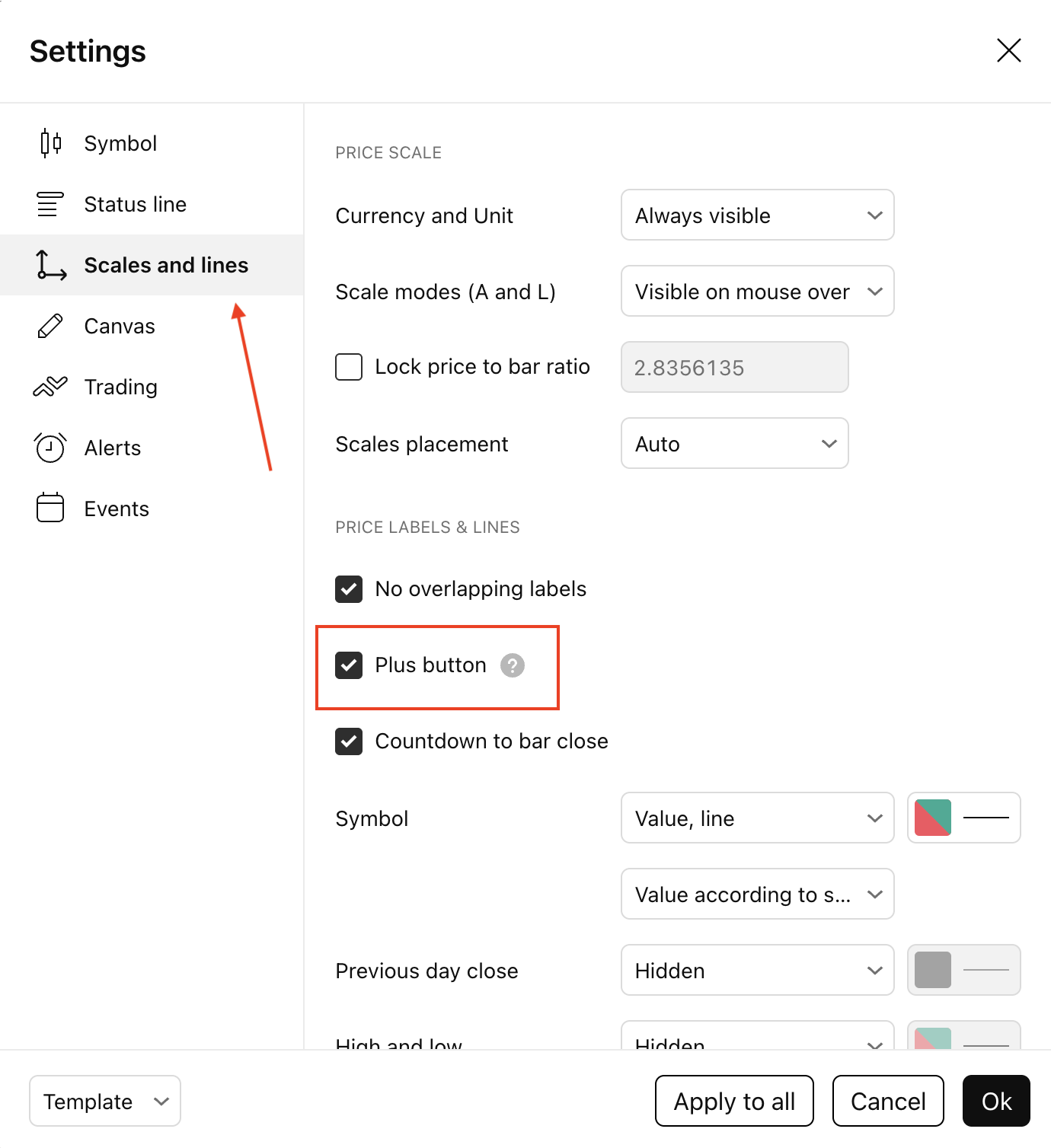 - Settings-->Scales→tick Plus Button