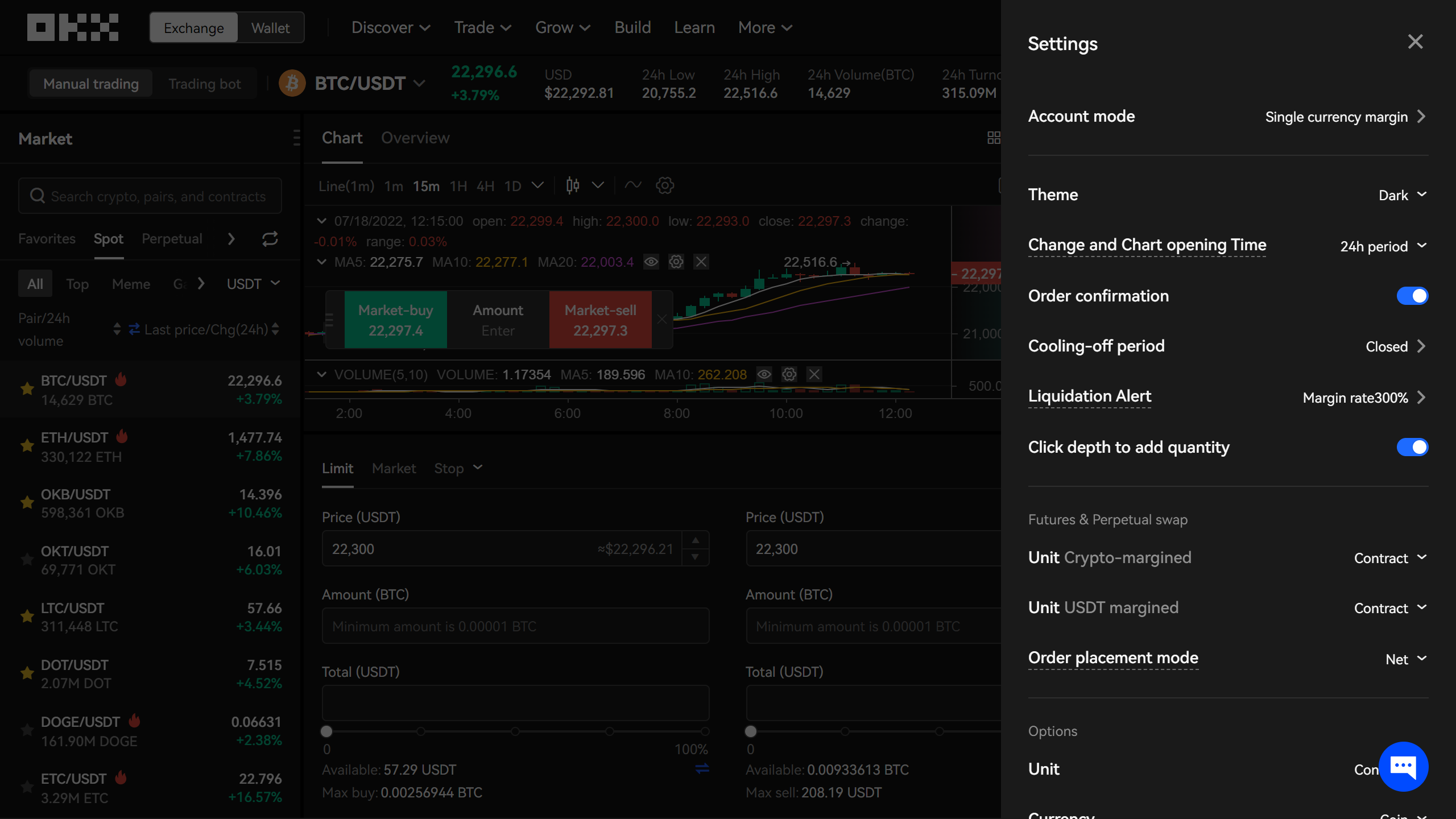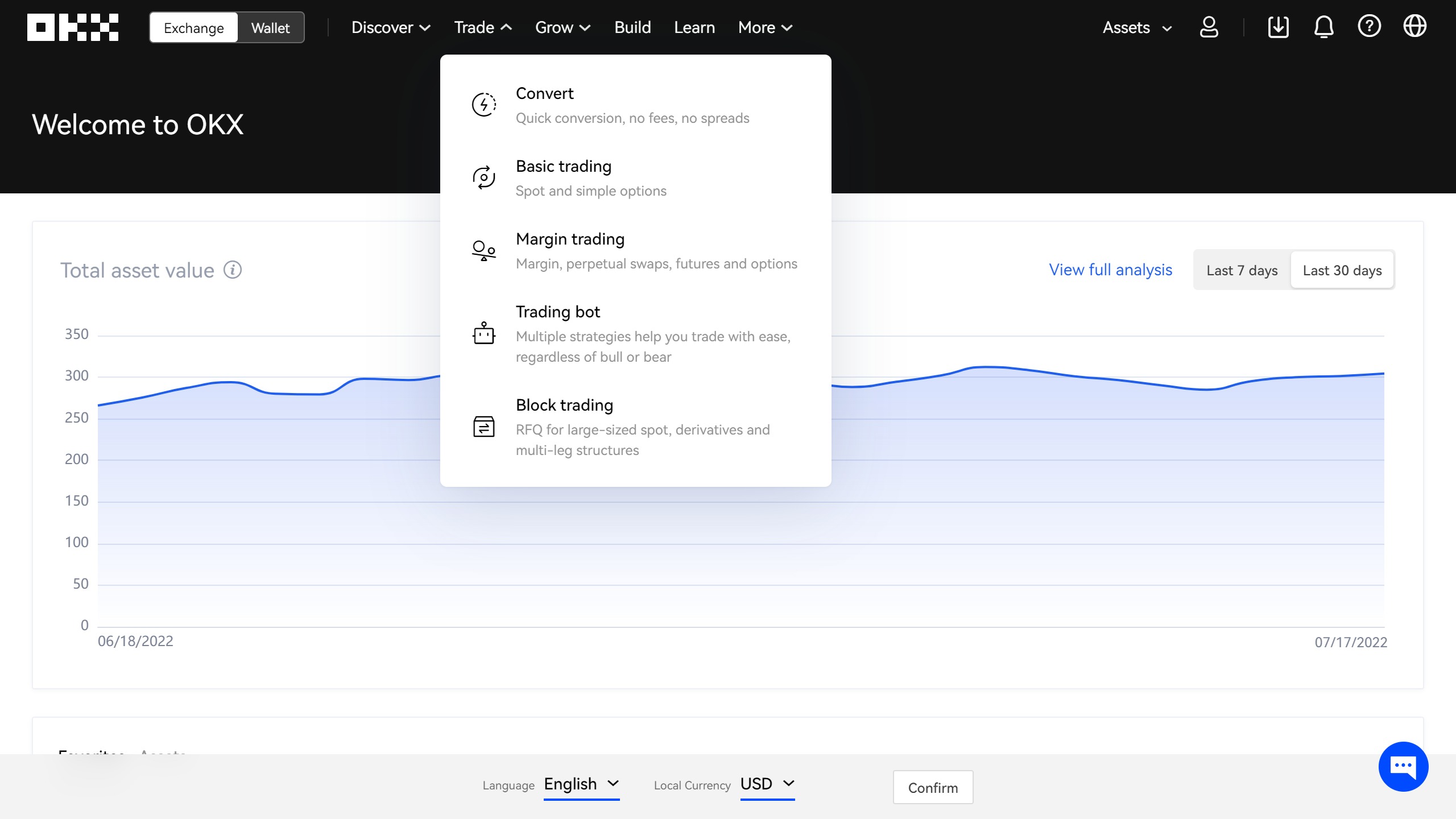 第1步. 拥有OKX账户后,导航到左上角的交易面板,然后选择基本交易Basic trading或保证金交易Margin trading。