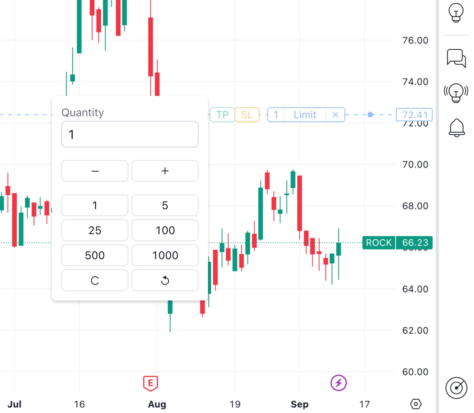 - 通过在图表上拖动来选择未来订单的价格