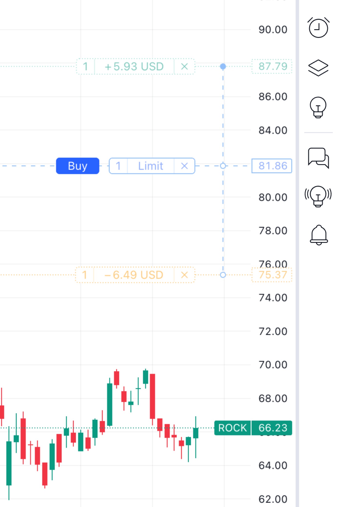 挂单可用于在图表上进行投影 - 限价、止损、止损限价。市场订单类型不支持图表投影。