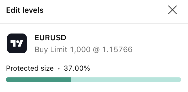 设置每个止盈水平的数量时,请注意信息图表,其中显示了止盈水平覆盖主订单数量的百分比。您也可以在此处查看主订单的数量和价格。