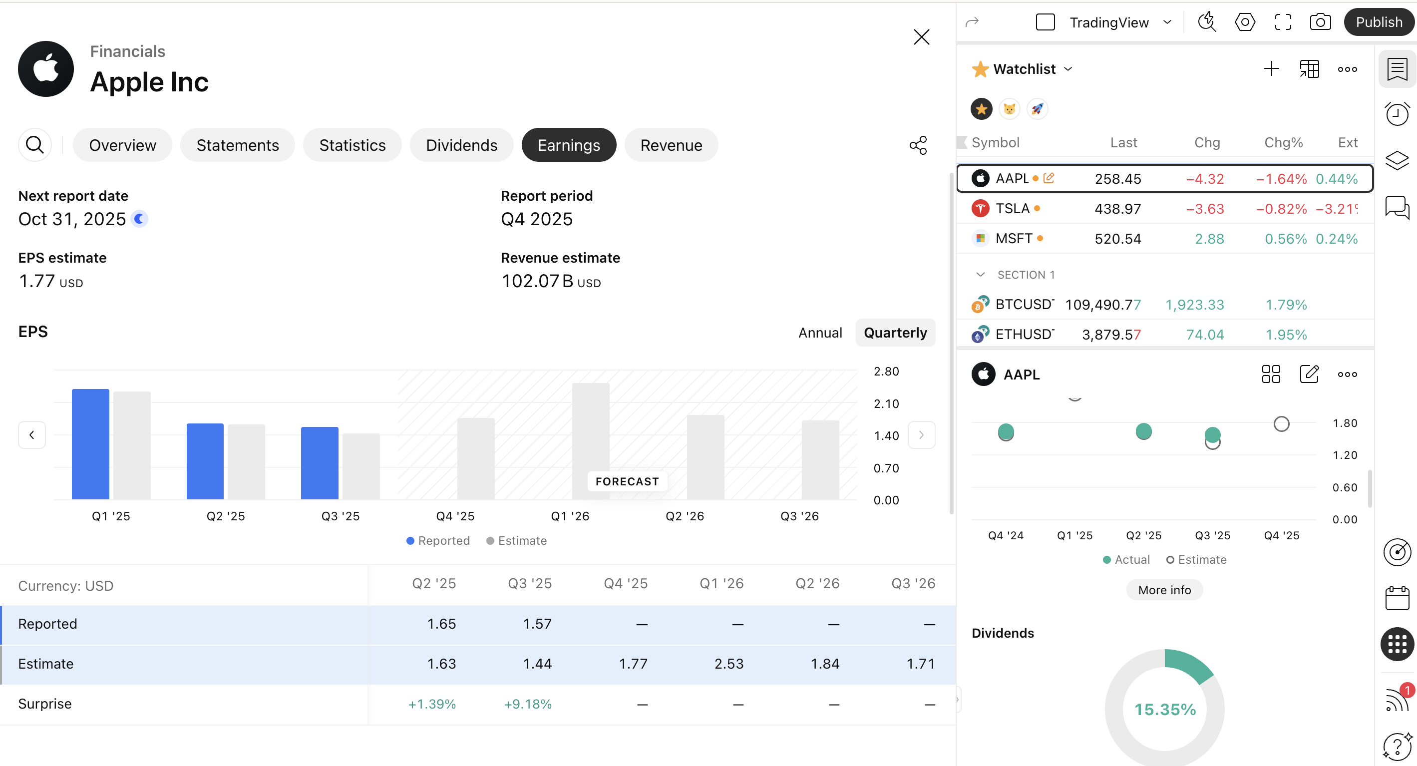 您可以随意查看收益、季节性、技术面和更多有用数据。如需更全面的查看,您可以将这些详细信息展开为全屏模式。