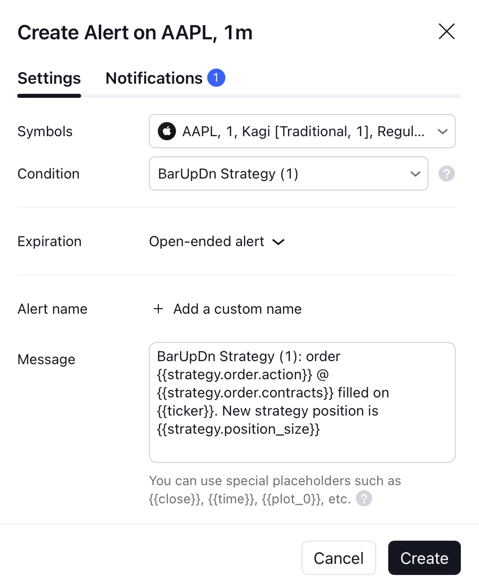 Strategy alerts are triggered on every order. The triggering frequency for such alerts is determined in the strategy code, so no frequency options are available in the dialog.