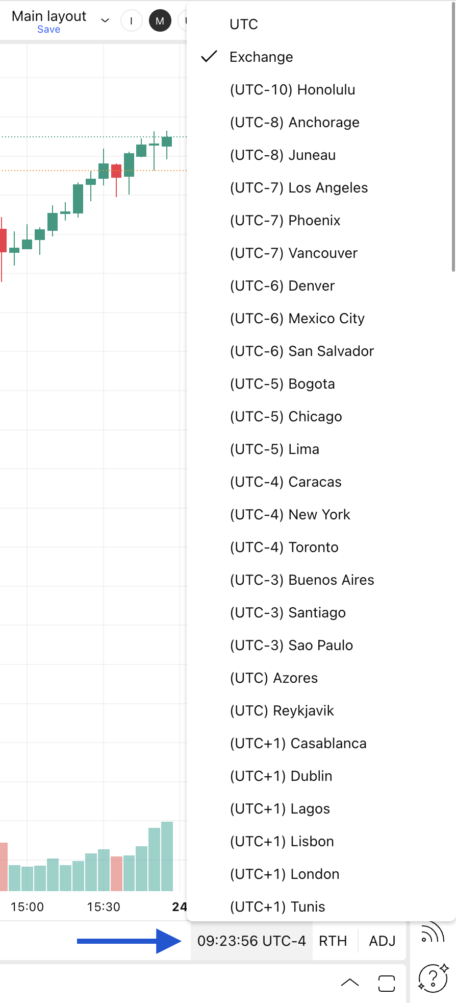The chart timezone can be changed and synchronized with your operating system time. It should be mentioned that the setting doesn’t affect alerts in any way.