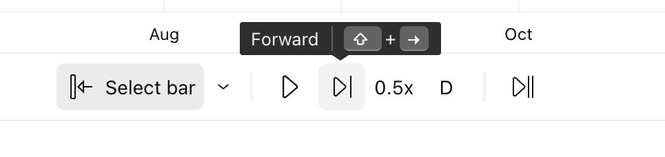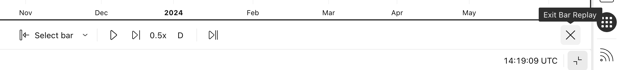 Click the Bar Replay button on the top panel of the chart to open the replay panel.