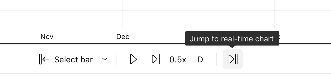 In addition, you can end replay and immediately return to live data. The Jump to real-time chart button allows you to do this in one click.