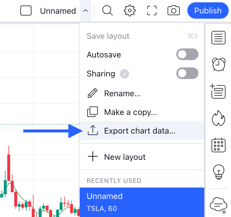To download your Supercharts data, choose "Export chart data…" from the dropdown menu on the upper toolbar.