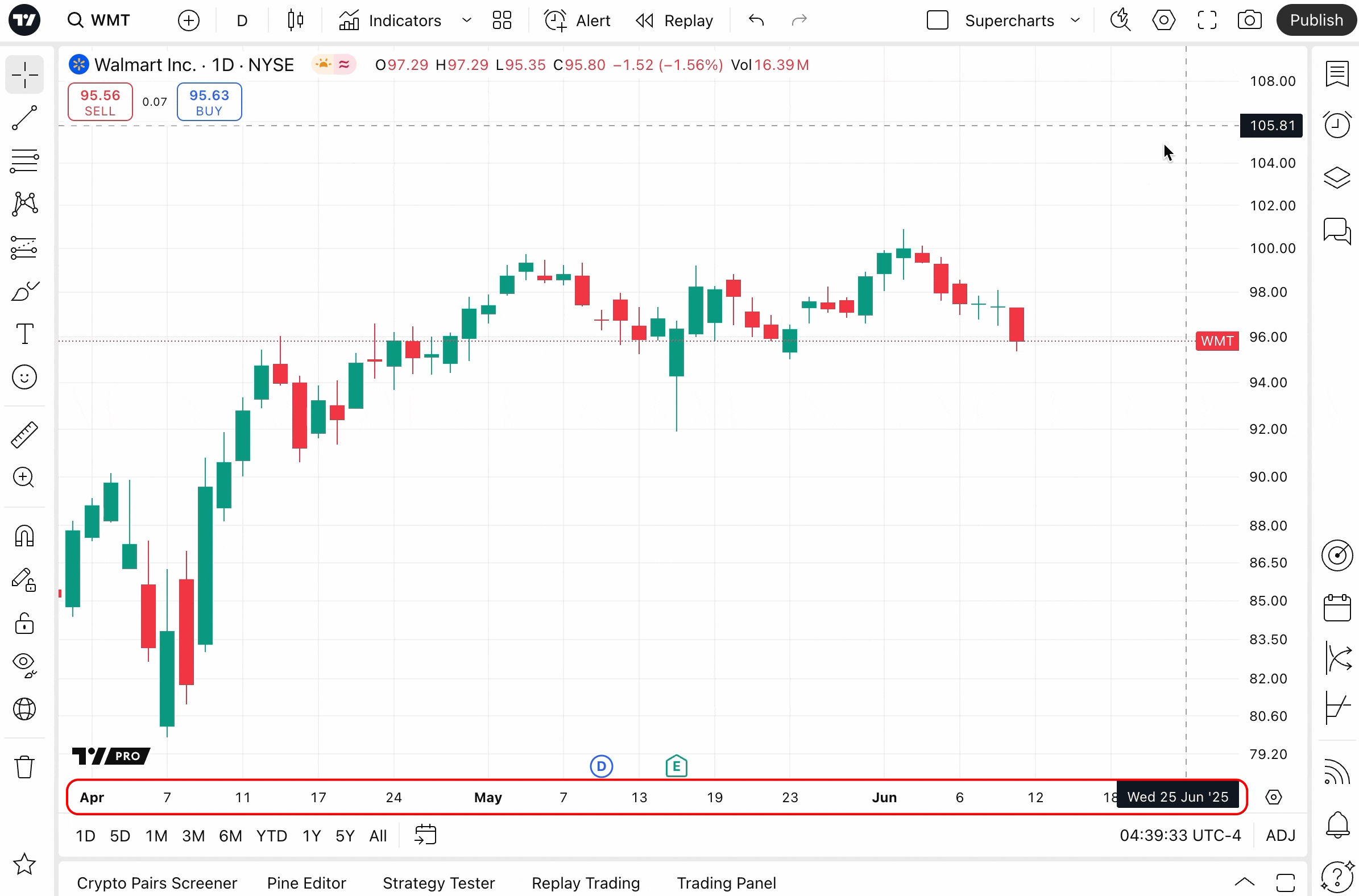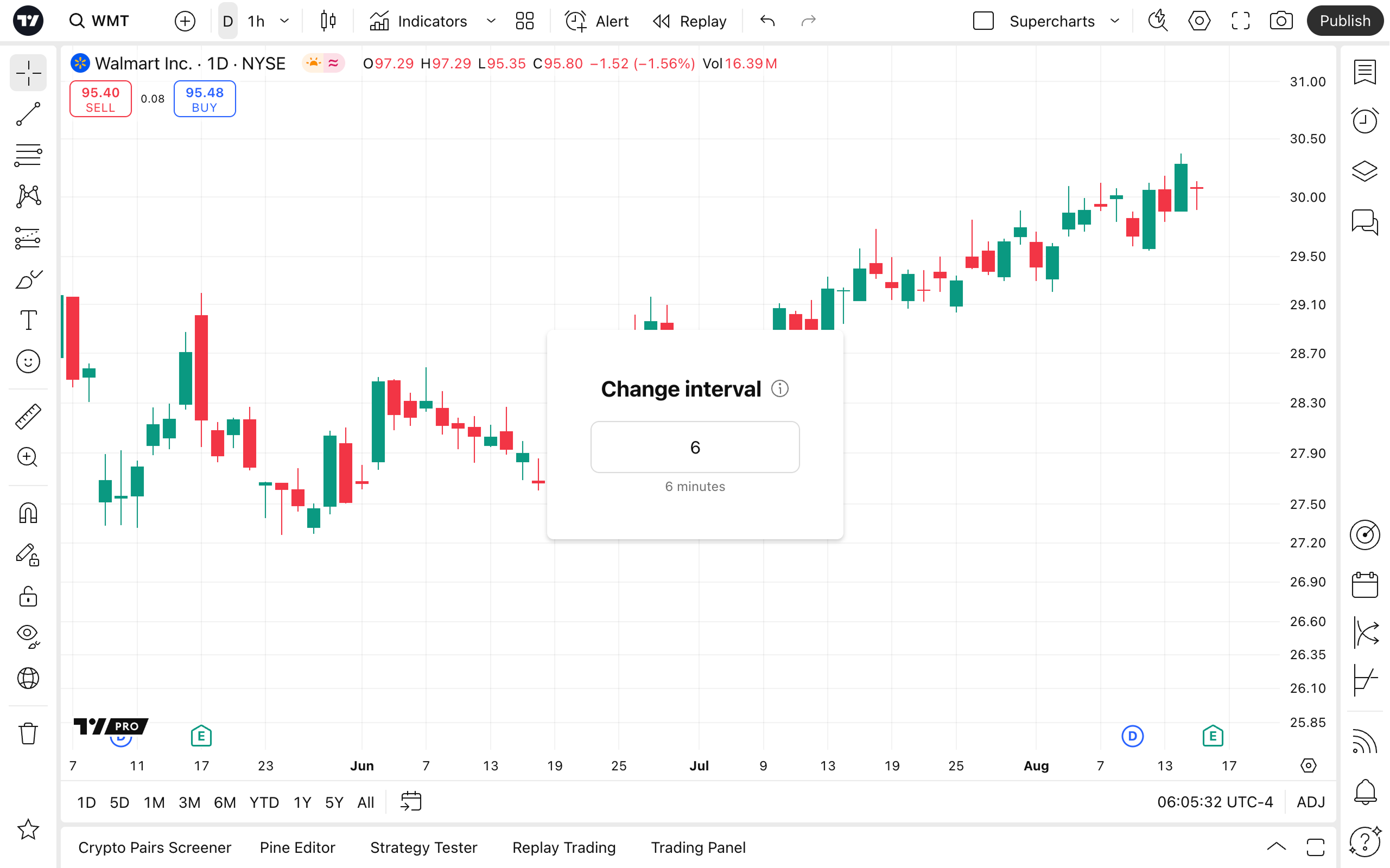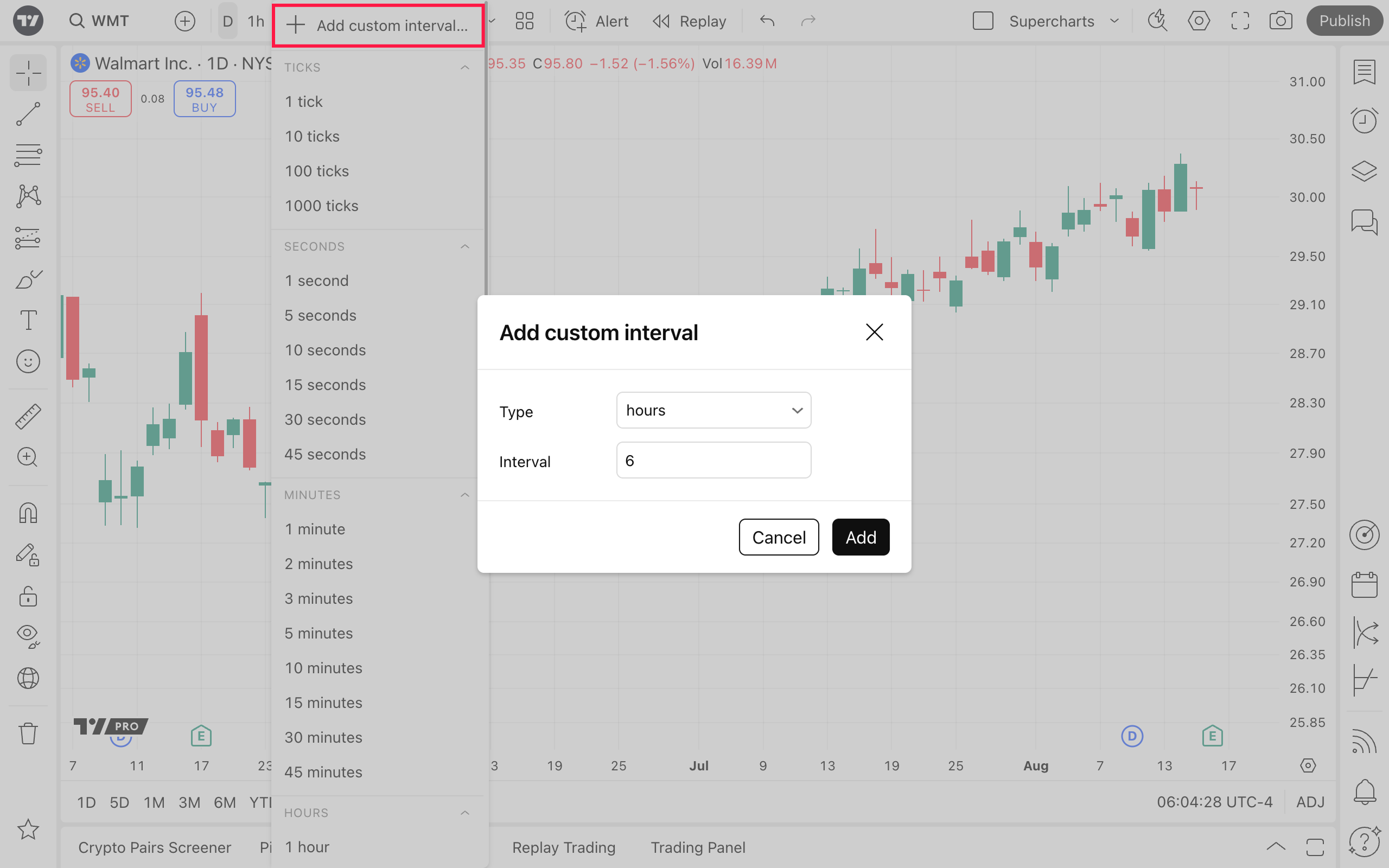! Tip: You can customize Supercharts to display non-standard intervals. For instance, instead of a 2-hour interval, you can set the interval to 2.5-hour interval.