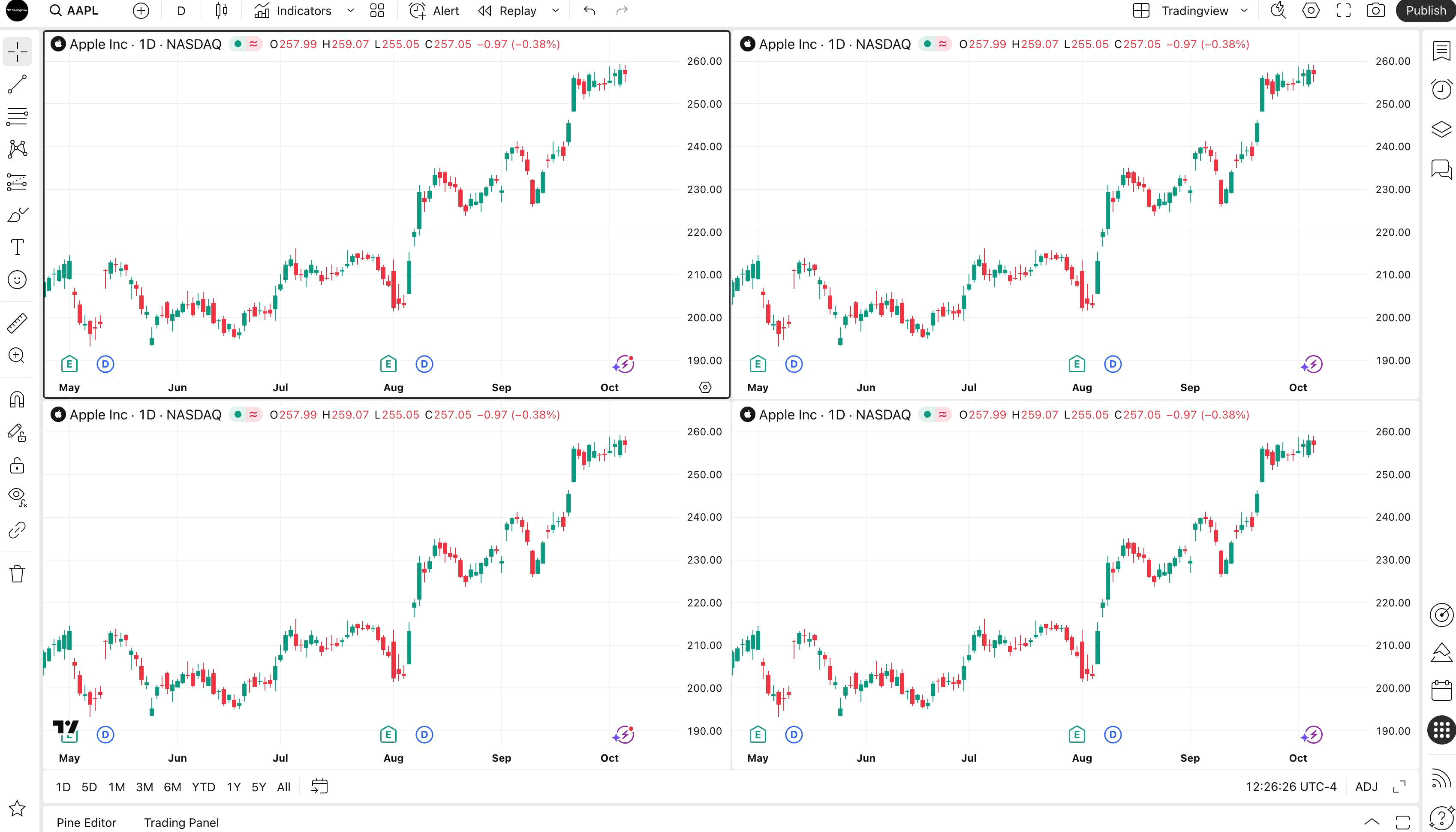 To enable synchronization of drawing objects, open the multichart mode in the Select Layout menu.