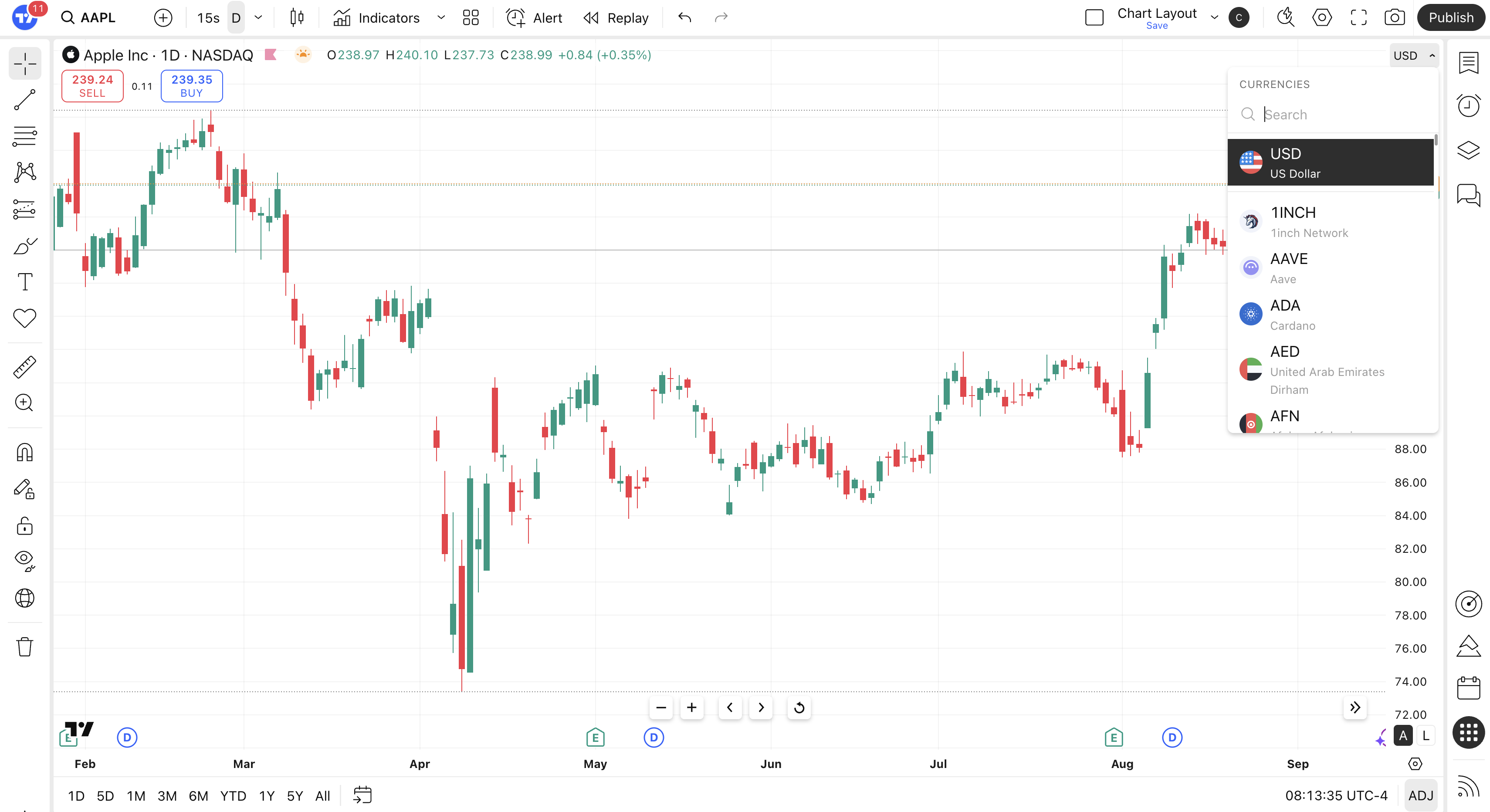 • In the converted currency or unit of measure mode, the Bar Replay feature isn’t available.