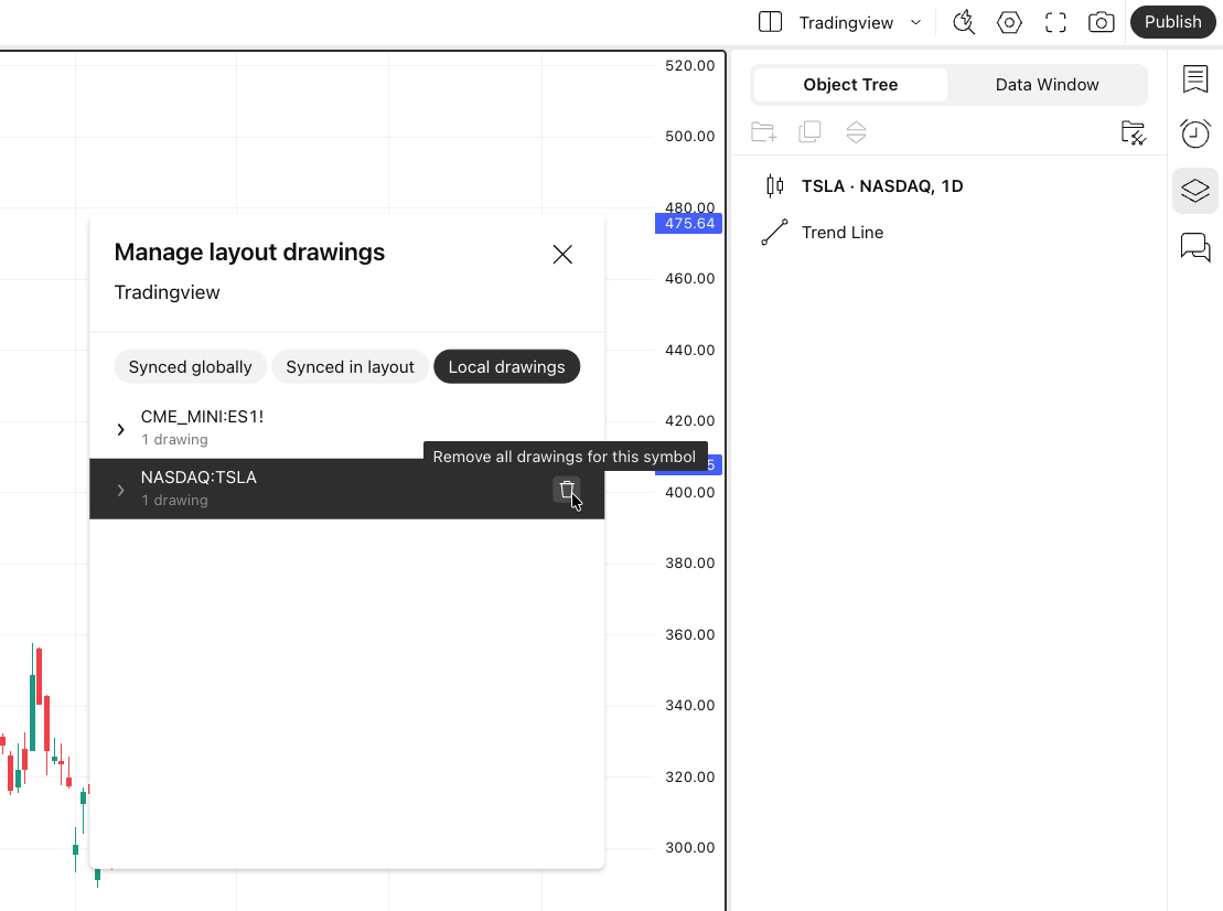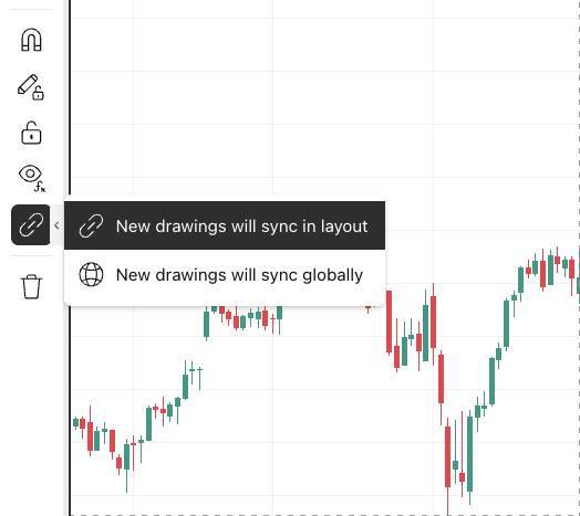 Global synchronization. Drawing objects will be synchronized across all charts and layouts, which means they will appear even in completely new layouts. Switching the global synchronization mode on a drawing object will remove it from all other layouts.