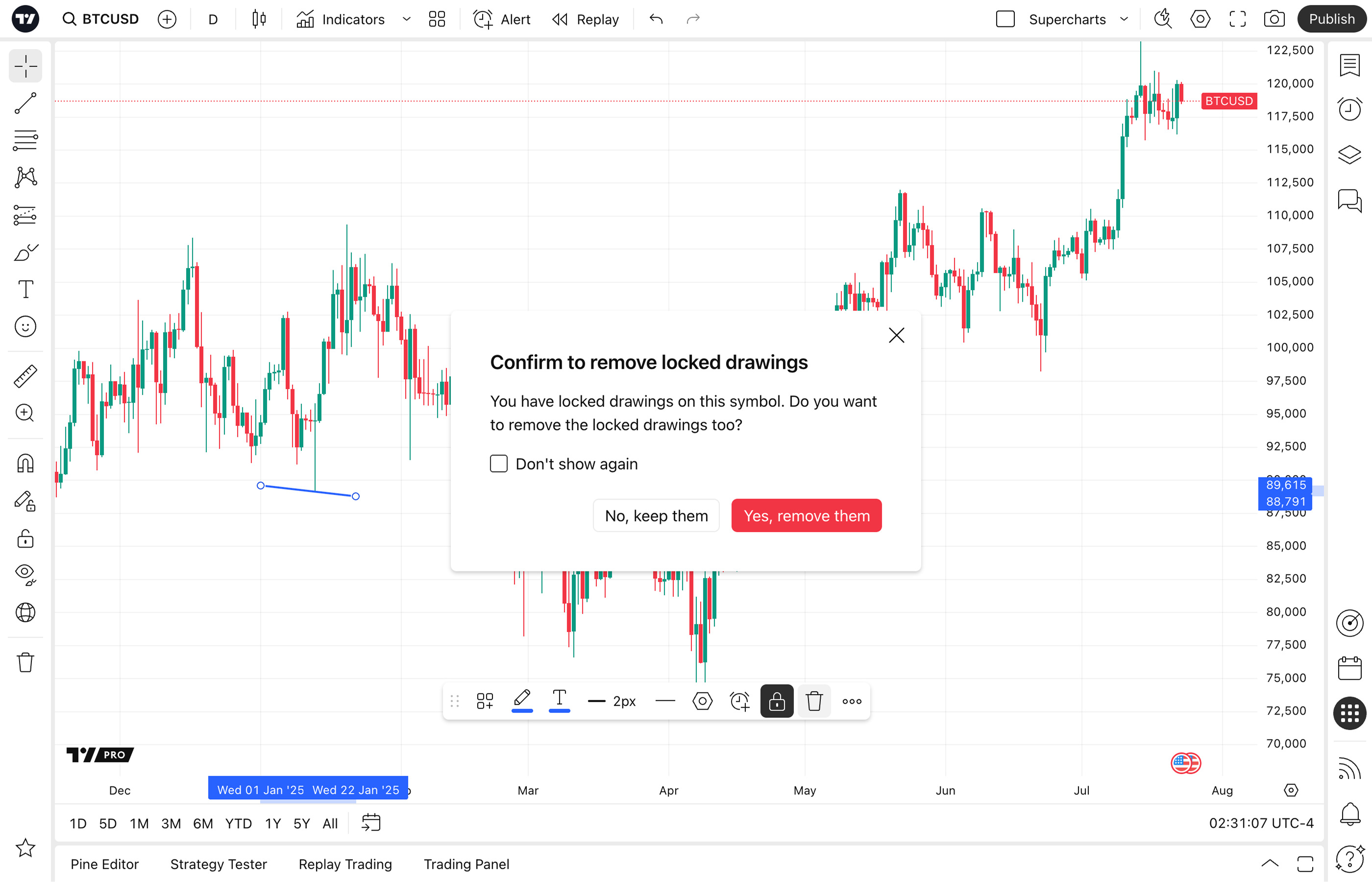 To change the behavior, open Remove options drop-down menu on the left panel, and toggle Always remove locked drawings setting: