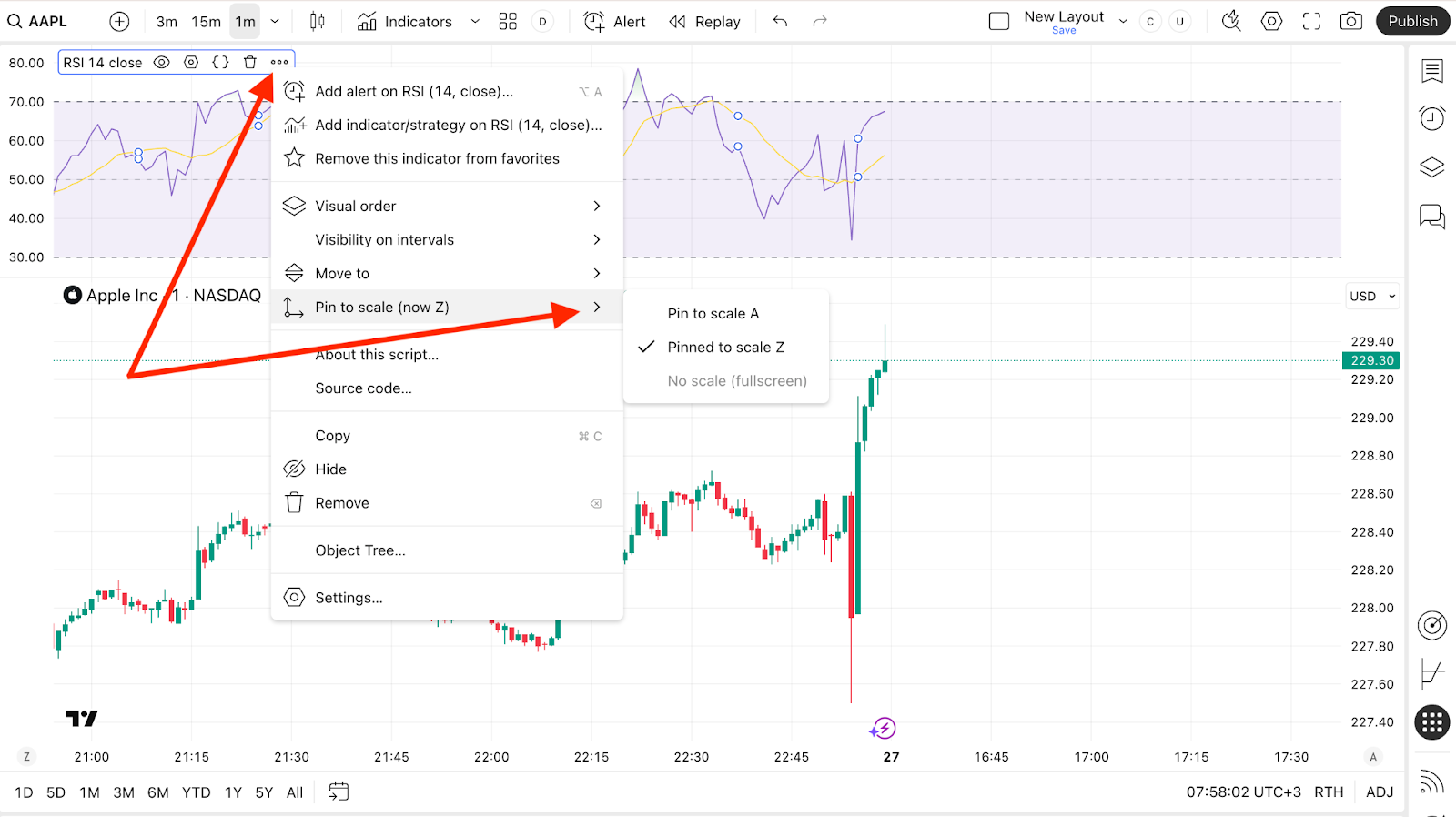 To remove the blank space, you can pin the indicator linked to it to the price scale of the main series. Just click on the three dots in the indicator line and select Pin to scale → Pin to scale A.