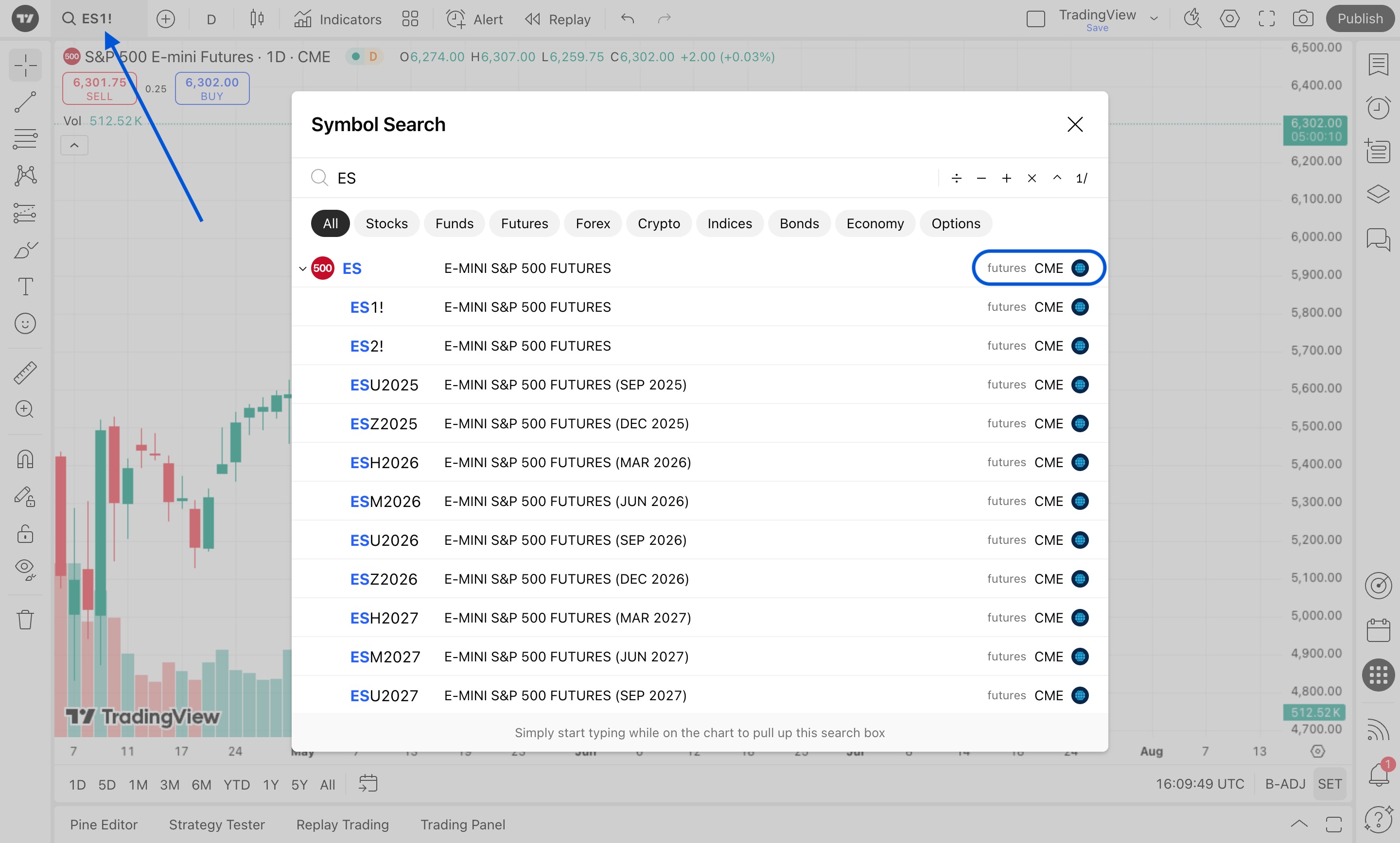 2. Enter the ticker into the "Symbol search" field; the exchange that lists this particular instrument will appear next to the ticker.