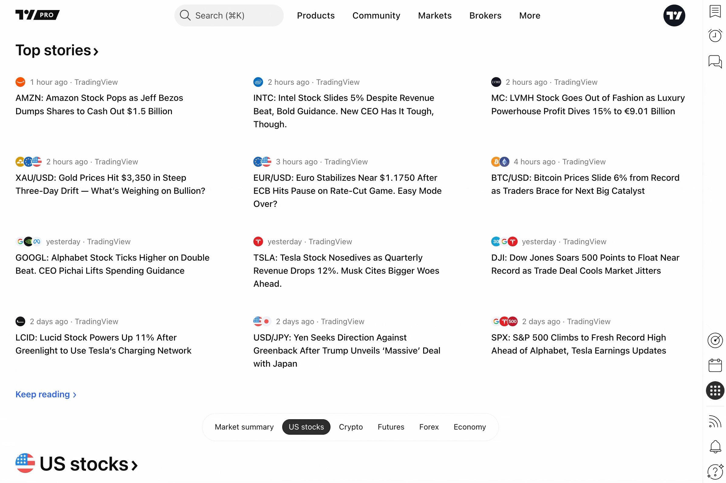 ! Note: By default, the U.S. stock market data is provided by Cboe Exchange. Thus it's slightly different from that of the primary exchanges. To get real-time data directly from NASDAQ, NYSE, or ARCA, you can add it to your plan.