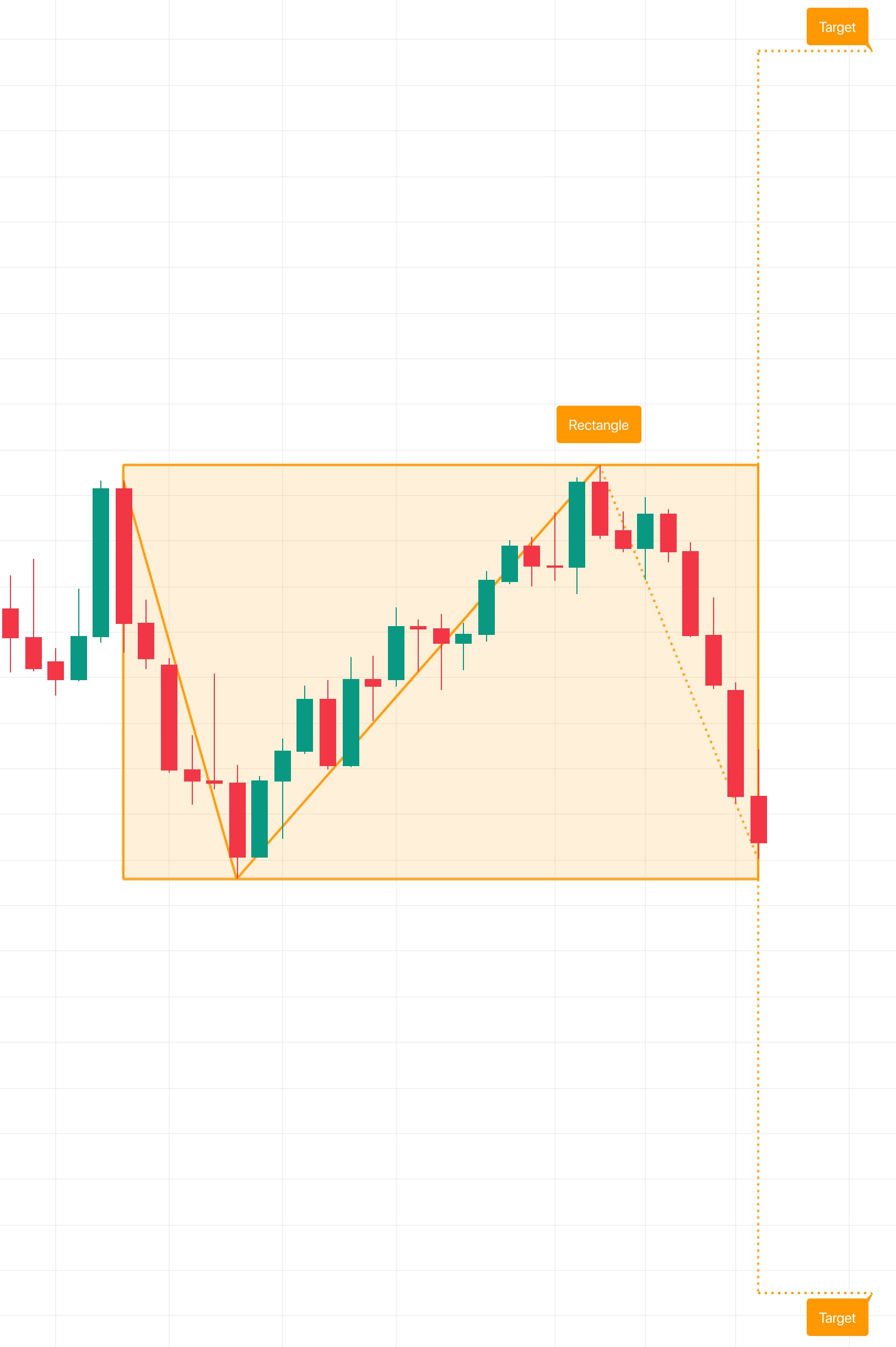 A rectangle is an indefinite pattern that can herald both an increase and a fall in price. The target price level depends on the direction in which the price broke this pattern. It is expected that after the breakout of the pattern, the price will go approximately to the height of the rectangle in the direction of the breakout.