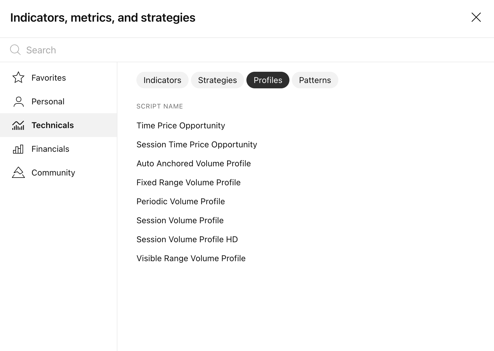 I cannot find the Volume Profile indicators