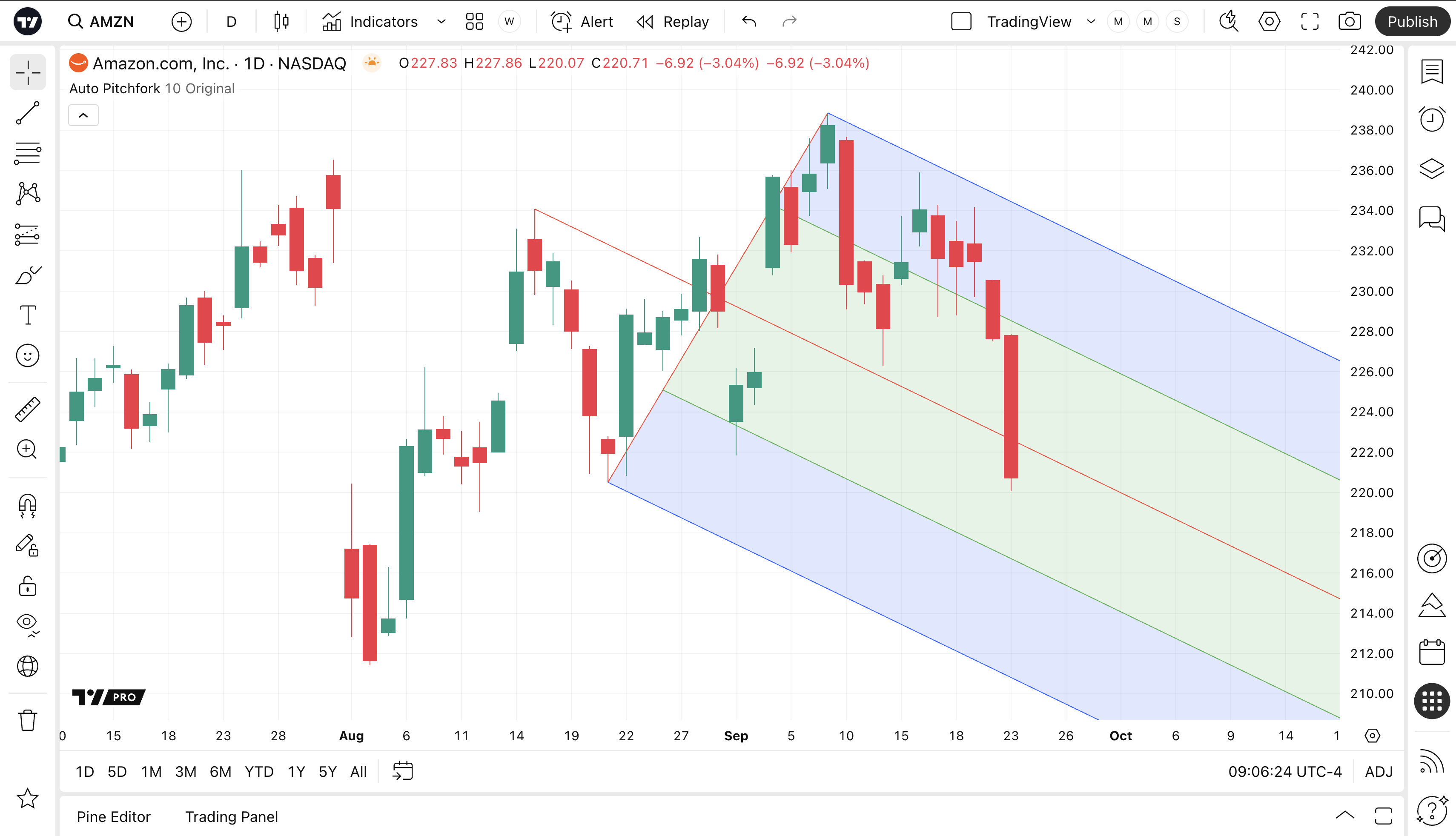 Auto Pitchfork is a tool that aims to identify possible support and resistance levels and forecast the future price movement based on the previous trends. Auto pitchfork is an indicator that draws the Pitchfork drawing tool automatically based on past price movement.
