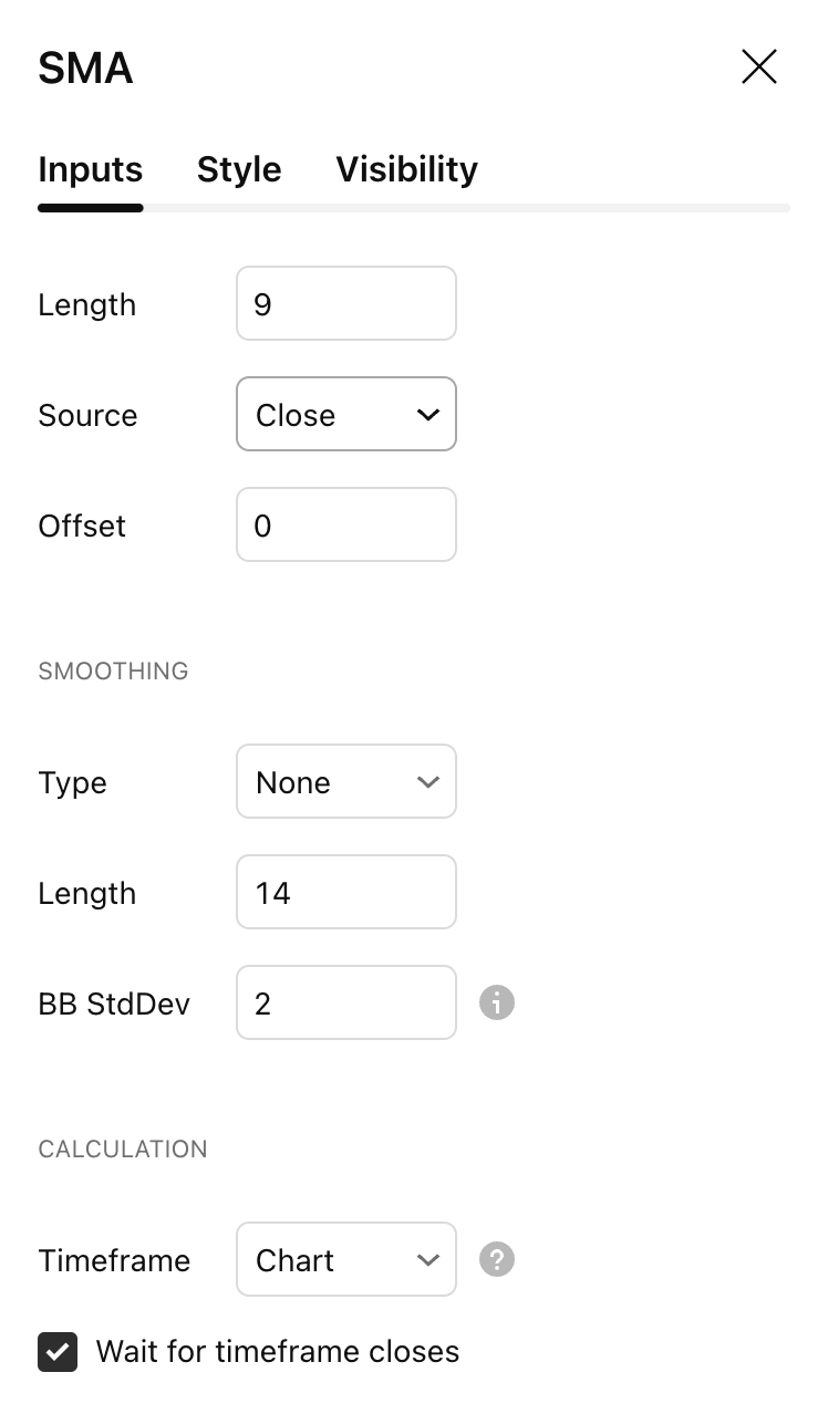 The time period to be used in calculating the Simple Moving Average. 9 days is the default.