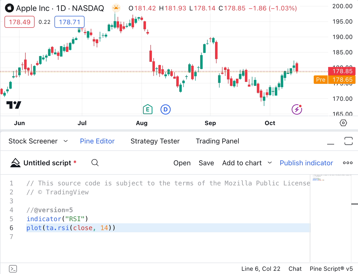 The finished indicator can be added to the chart, saved for further use and editing, or published in our Community Scripts.