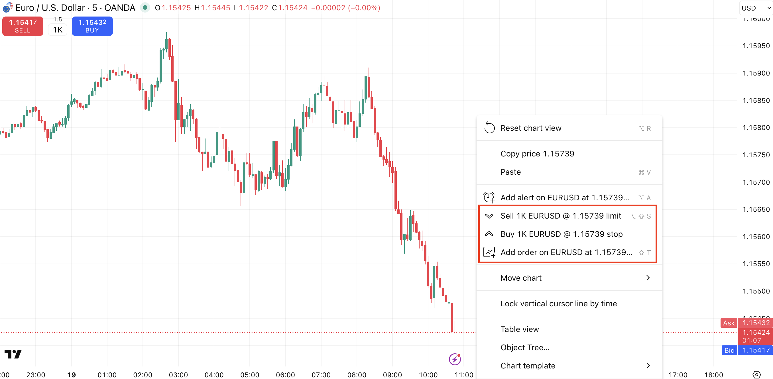 - Right-click anywhere on the chart.