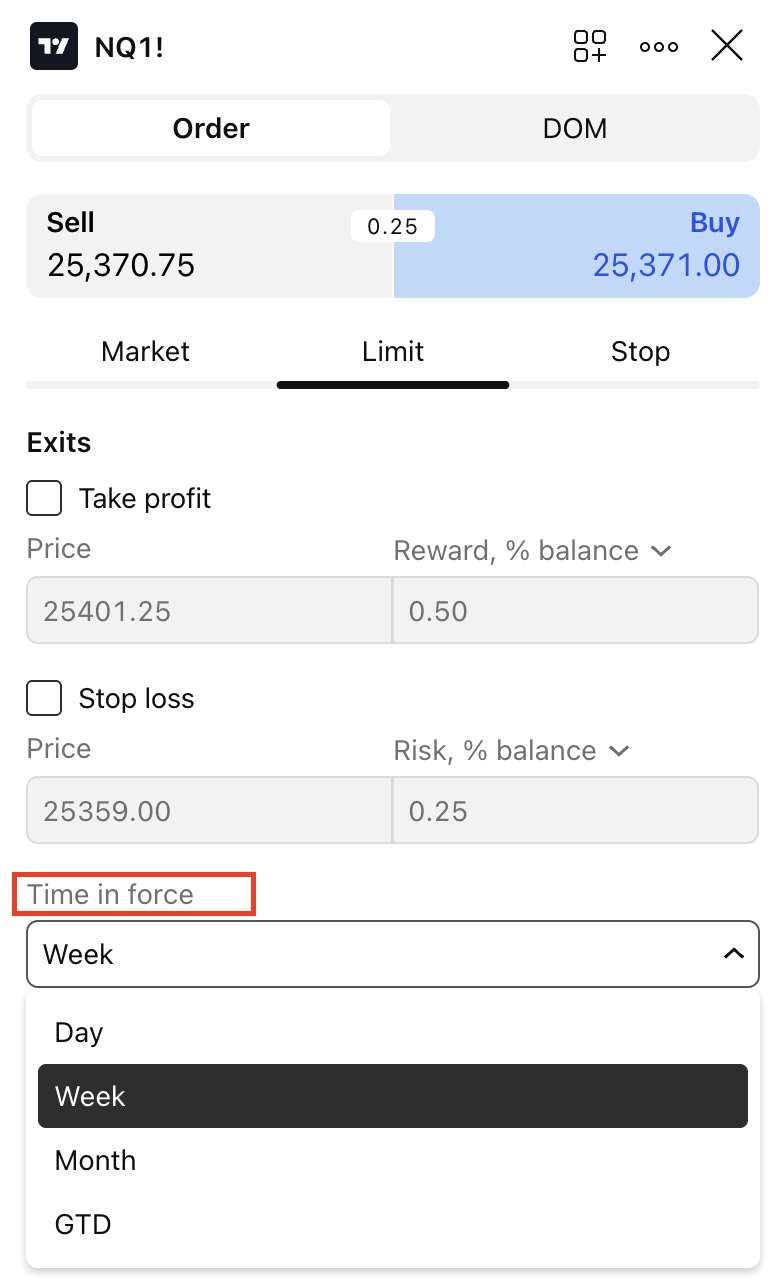 One of the reasons for order cancellation is its expiration. When order is placed Time in Force can be selected. There are four options: Day, Week, Month and GTD (Good till date) in Paper Trading. The Day option is applied by default and means that the order will get canceled in 24 hours unless it is not executed.