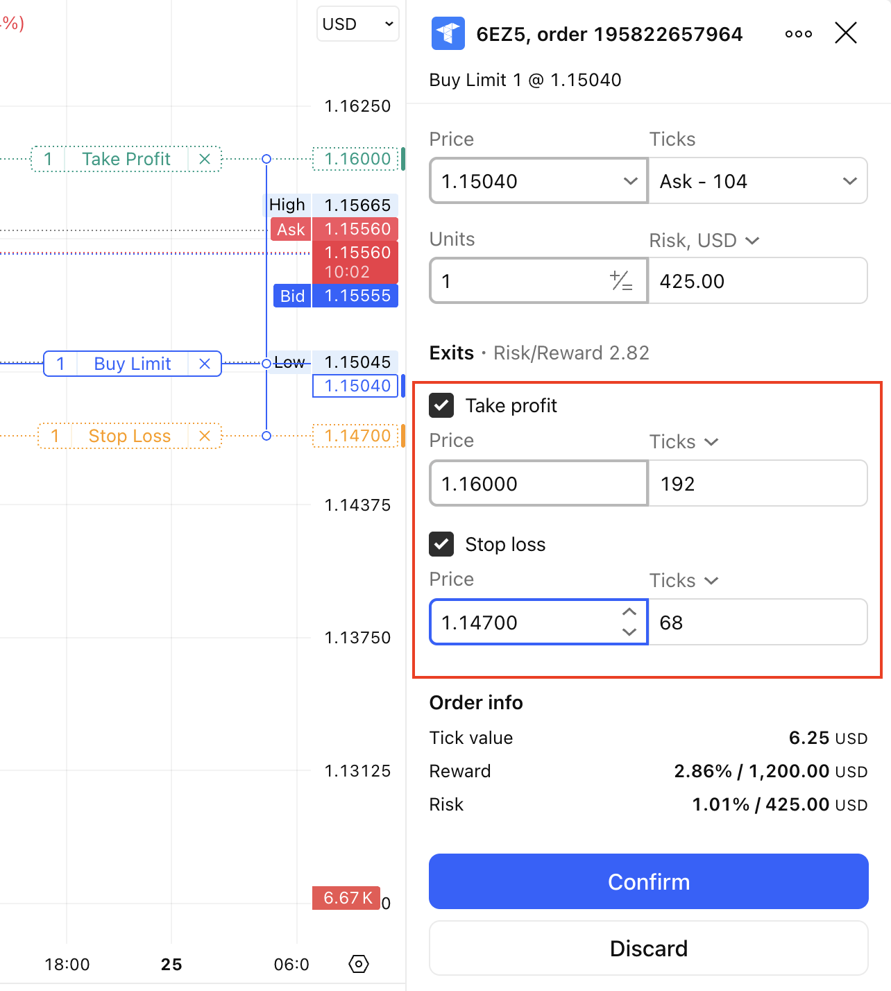 Can I add Stop Loss/Take profit levels on the chart?