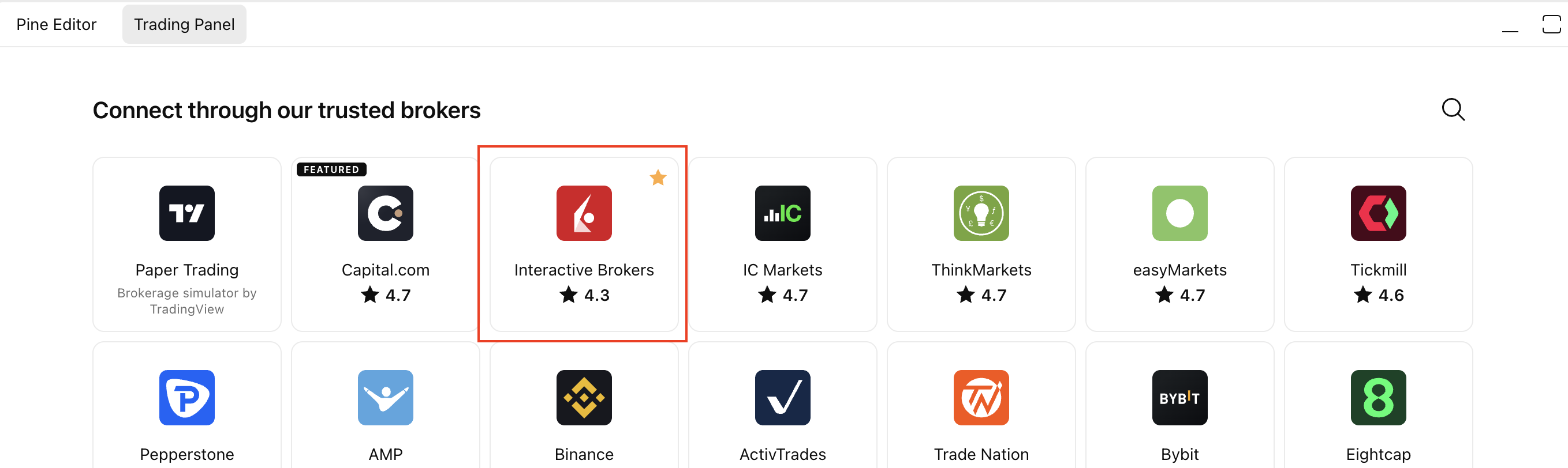 - Go to www.tradingview.com/chart and open the Trading Panel, choose Interactive Brokers and click Connect;