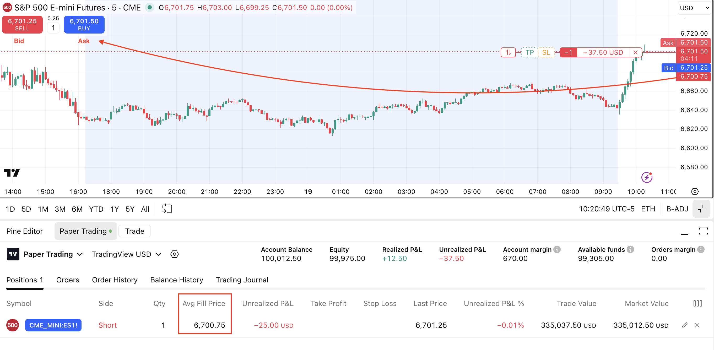 (Average Fill Price − Ask price) × QuantityExample of profit and loss calculation for a short futures position: