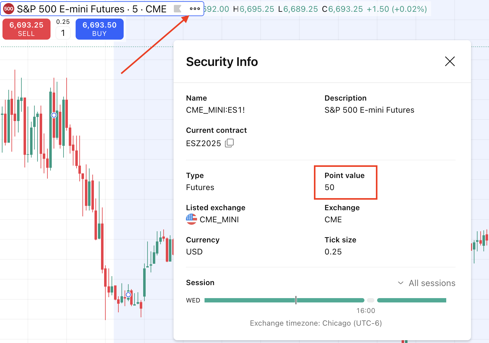 ! Note: Your profit and loss is calculated in the symbol's currency and then converted to USD, as the dollar is the default currency for Paper Trading.For futures, the formulas are slightly different. They account for the point value of the contract, which you can find in the symbol info by clicking on the three dots in its description.