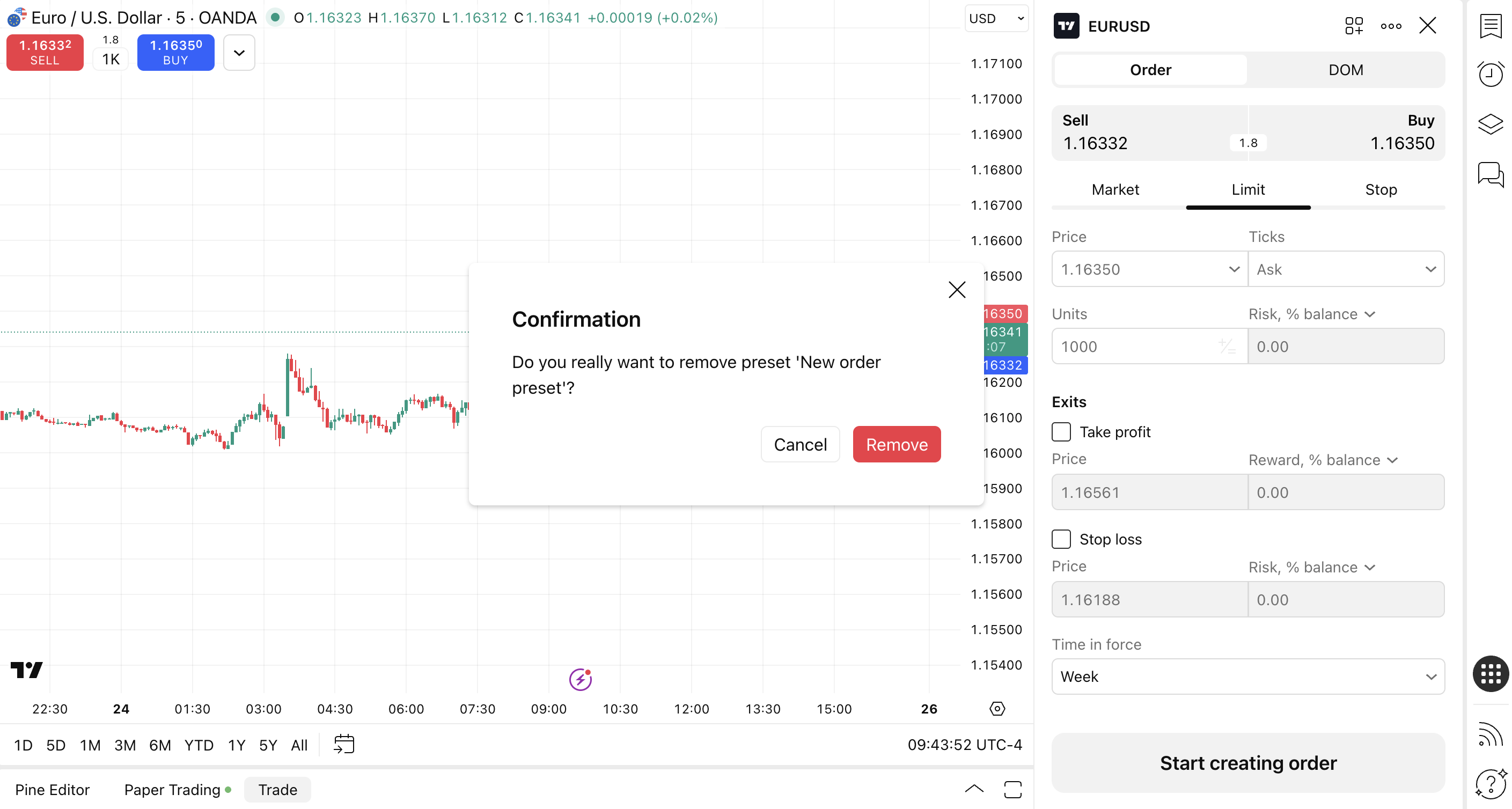 A preset can be deleted through the preset menu in the Order Window by clicking the Delete button.