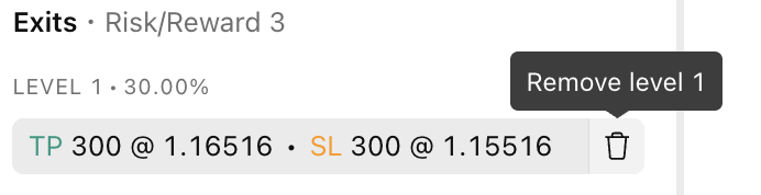 Next to each level, you will also see the percentage of the main order's quantity used in that specific exit level. When this exit level is executed, the position will be closed for the corresponding percentage of its total quantity.