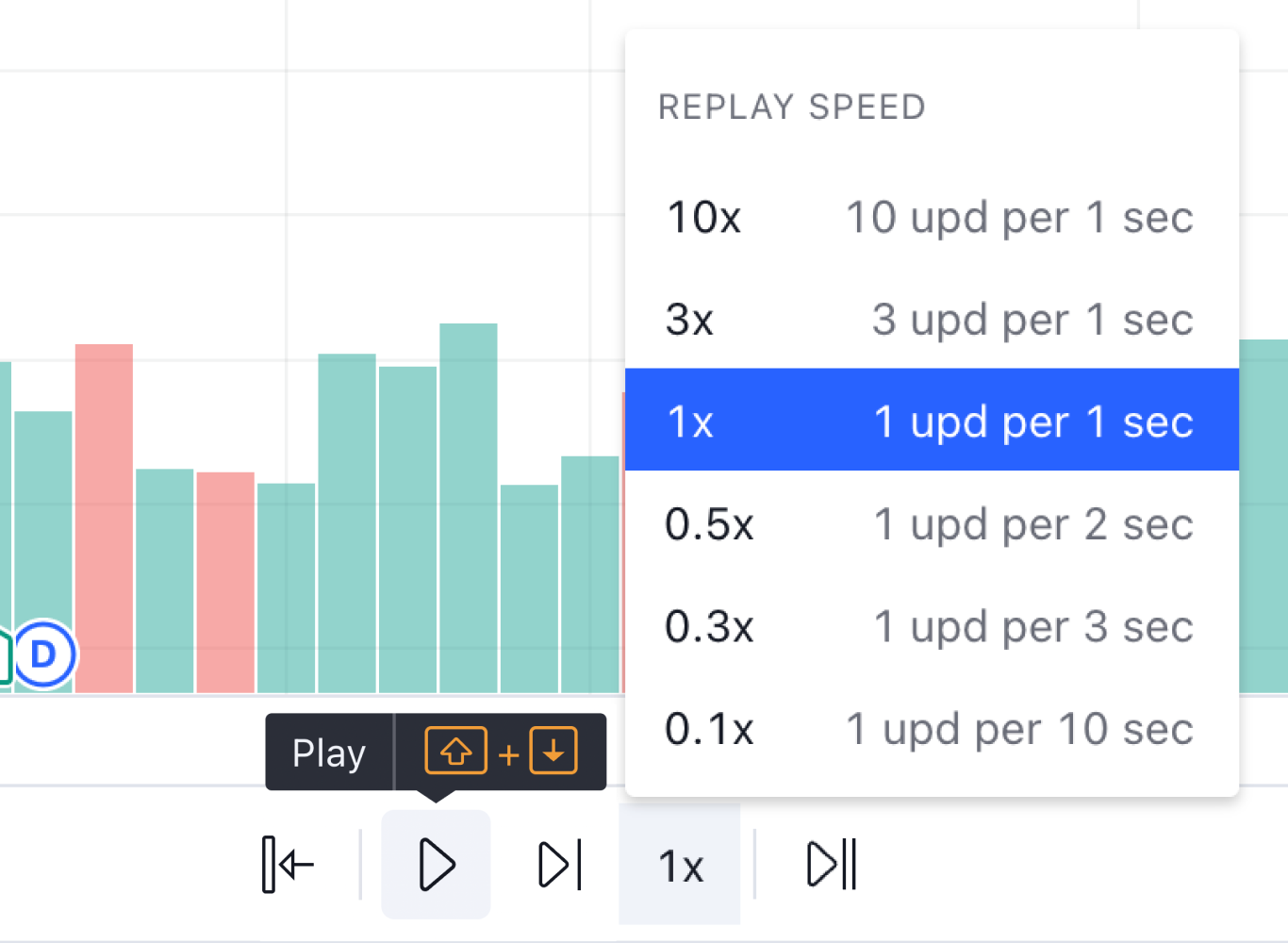 また、リプレイを終了して、直ちに現在のデータに戻ることも可能です。「現在のバーにジャンプ」ボタンを1度クリックするだけです。