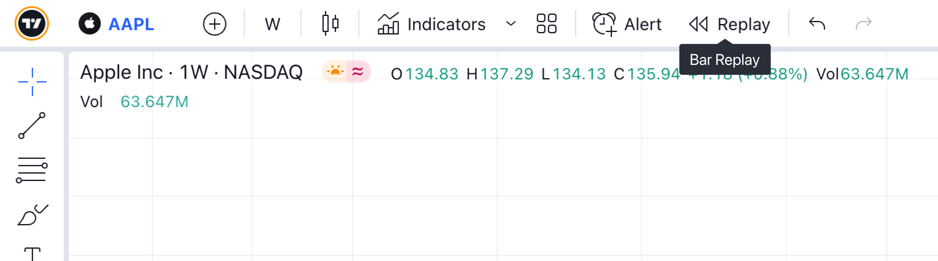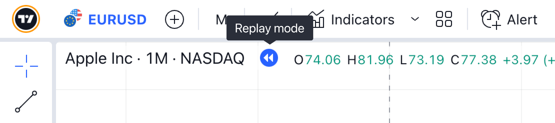 - 「回帰トレンド」や「固定期間出来高プロファイル」のツールはリプレイ中には機能しません。
