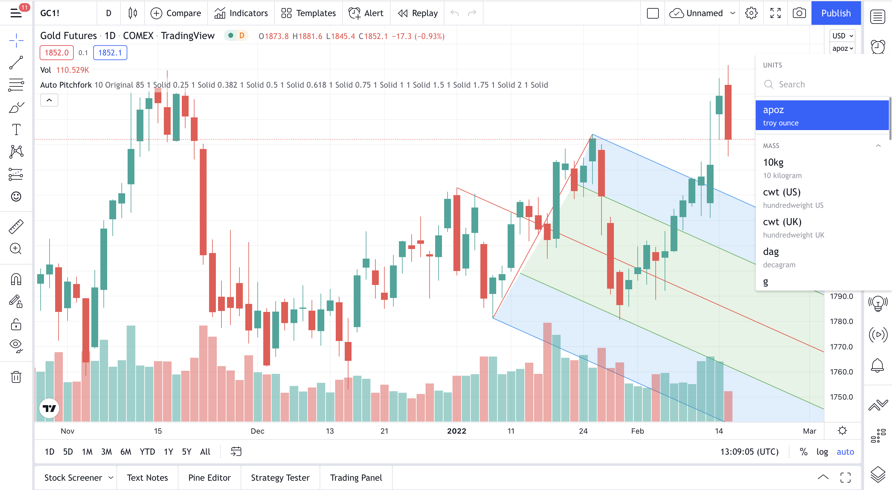 単位変換機能は、コモディティチャートをより良く分析するために役立ちます。