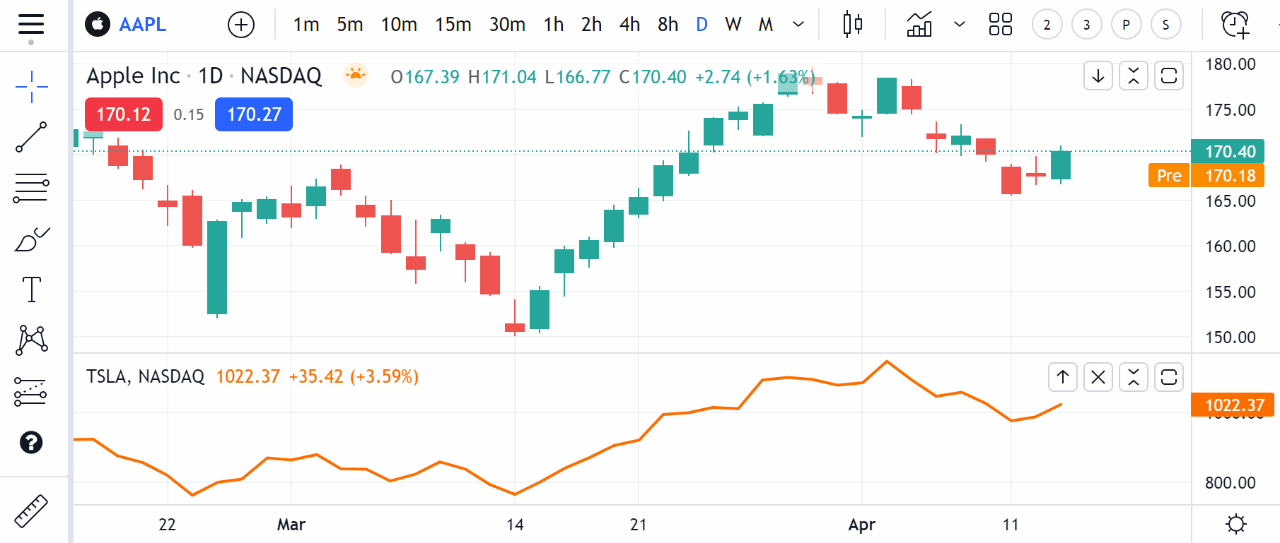 インジケーターや追加シンボル、ローソク足などの各ペインを最小化するには、右隅の「ペインを折りたたむ」ボタンをクリックしてください(「チャート設定」の「外観」タブでペインボタンの表示が有効になっていることをご確認ください)。もう一度ボタンを押せば、元のサイズに戻すことができます。