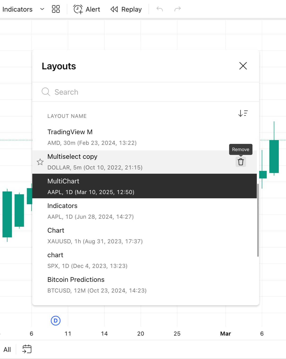 ウォッチリストとアラートはレイアウトの中に保存されません。レイアウトの一覧についてはレイアウトのウィンドウから見ることができます。