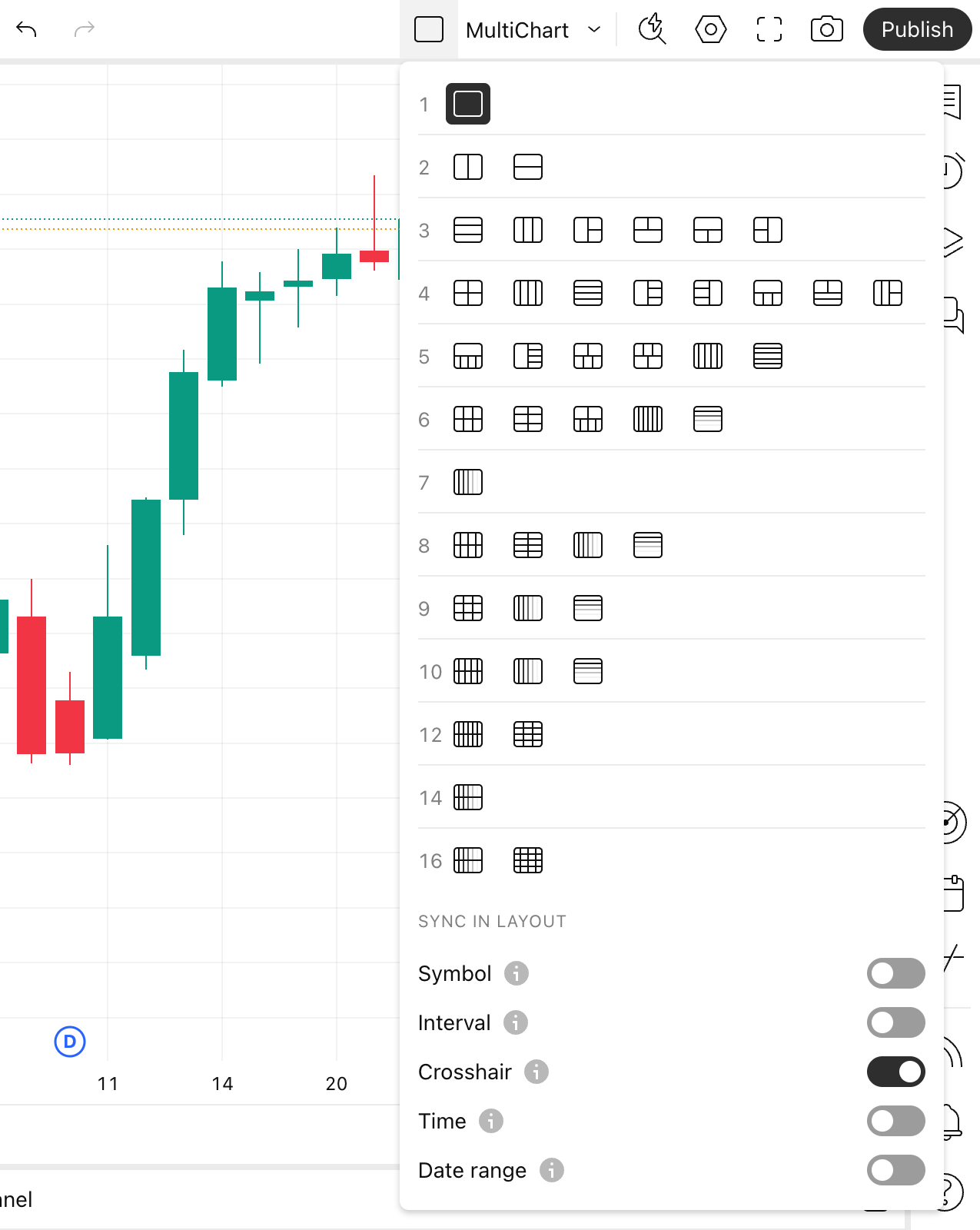 これらの設定はレイアウト間で同期されません。複数のタブで1つのレイアウトを操作して、1つのチャートに対して異なる設定を行った場合は最新の変更のみが保存されます。
