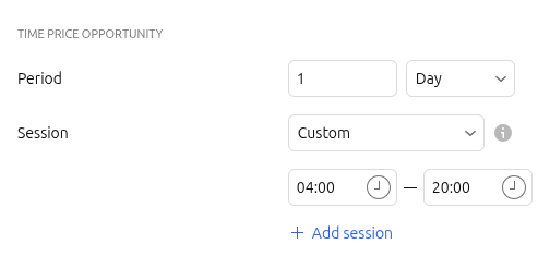 - 1つ目のカスタムセッションを04:00–20:00 (時間外取引) に設定